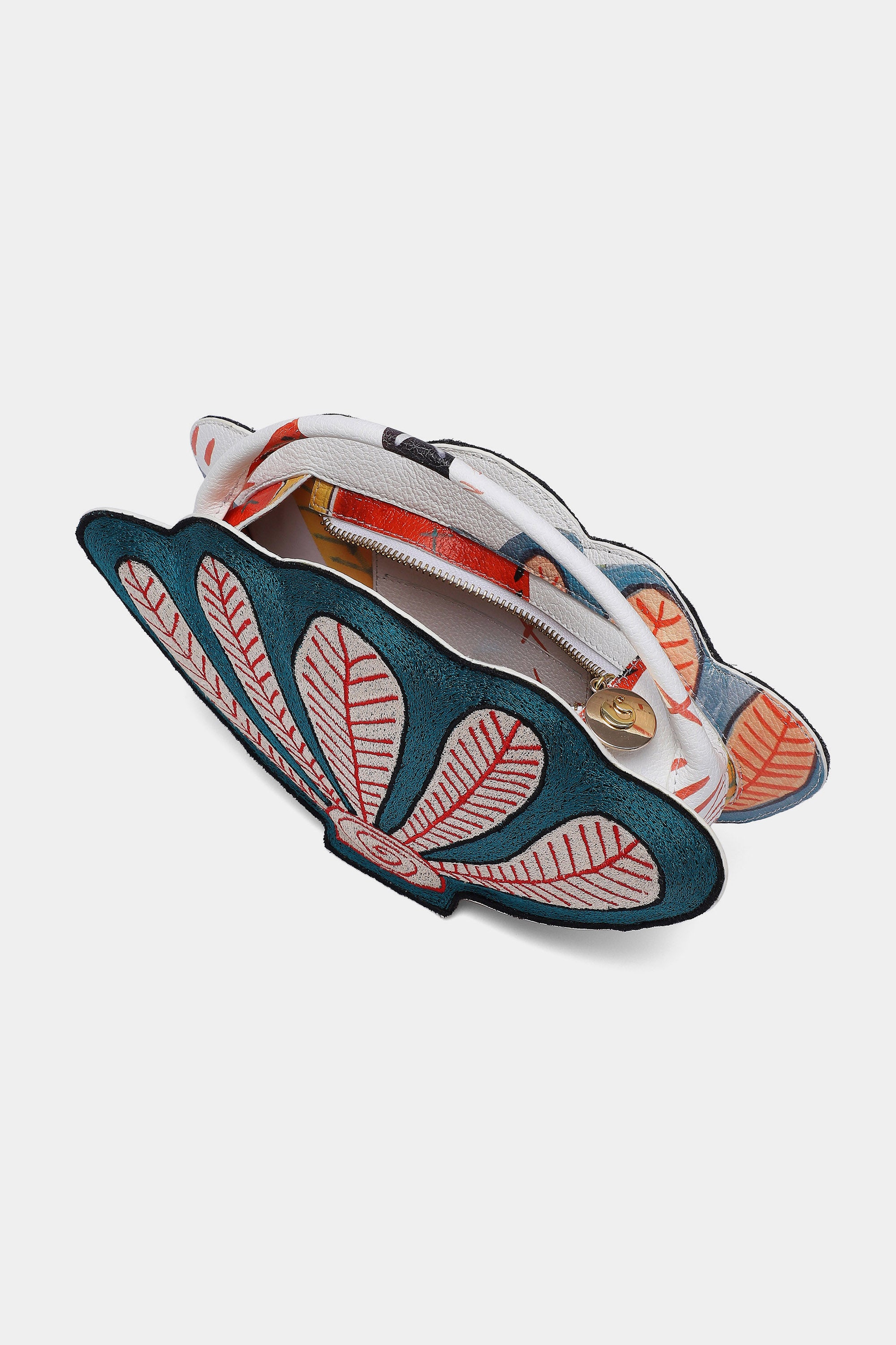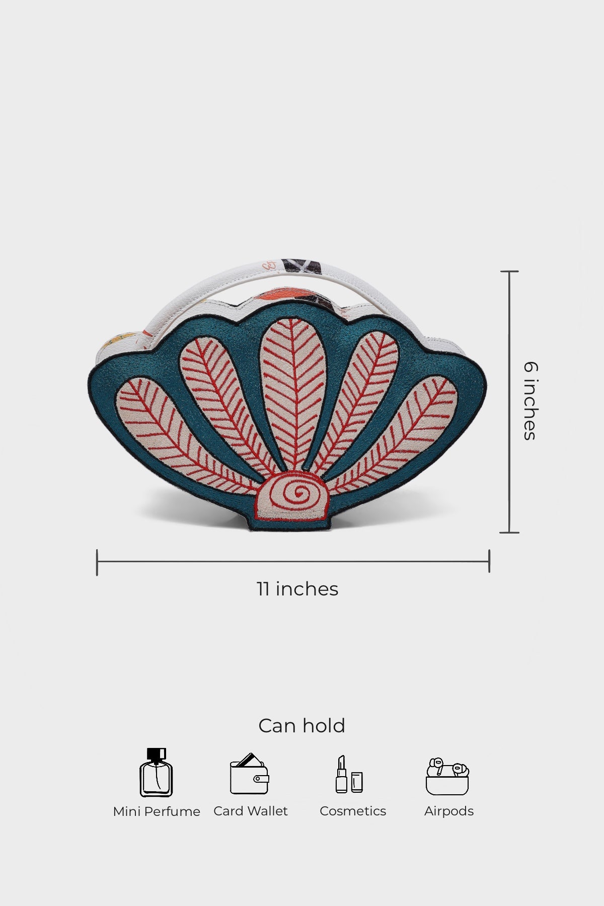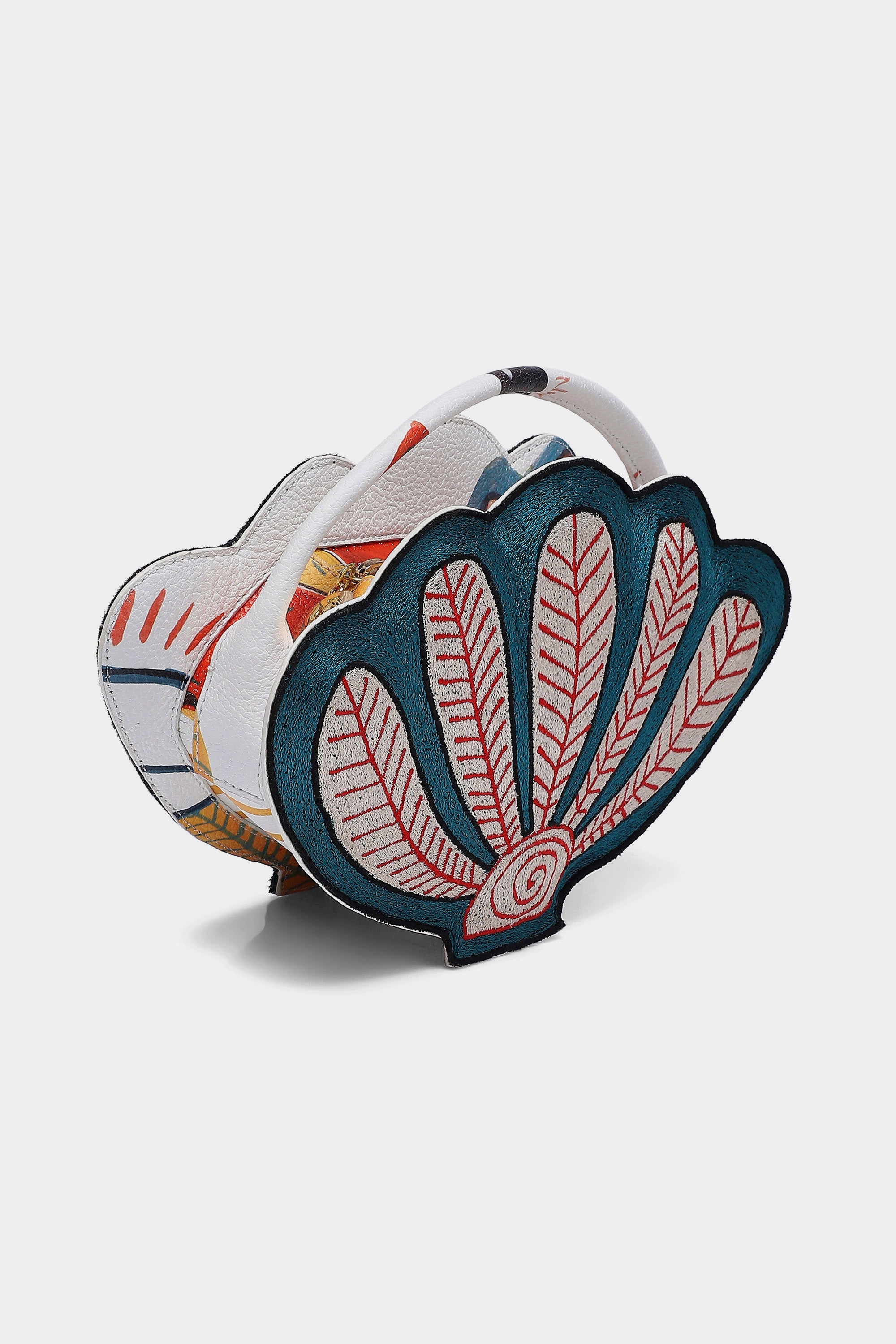 The Surocco favourite - Shellace takes an exaggerated form with a new function as a statement clutch. With scallops, embroidered surfaces & a top handle the clutch is a sensational addition to wardrobes.