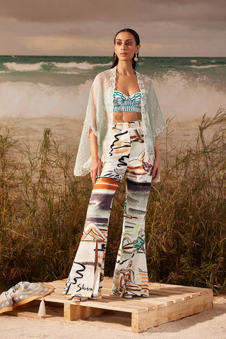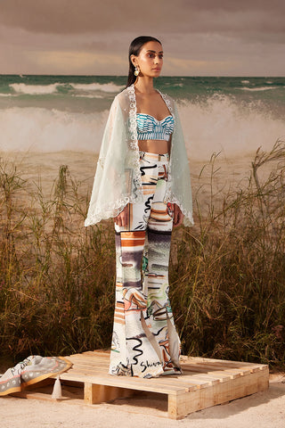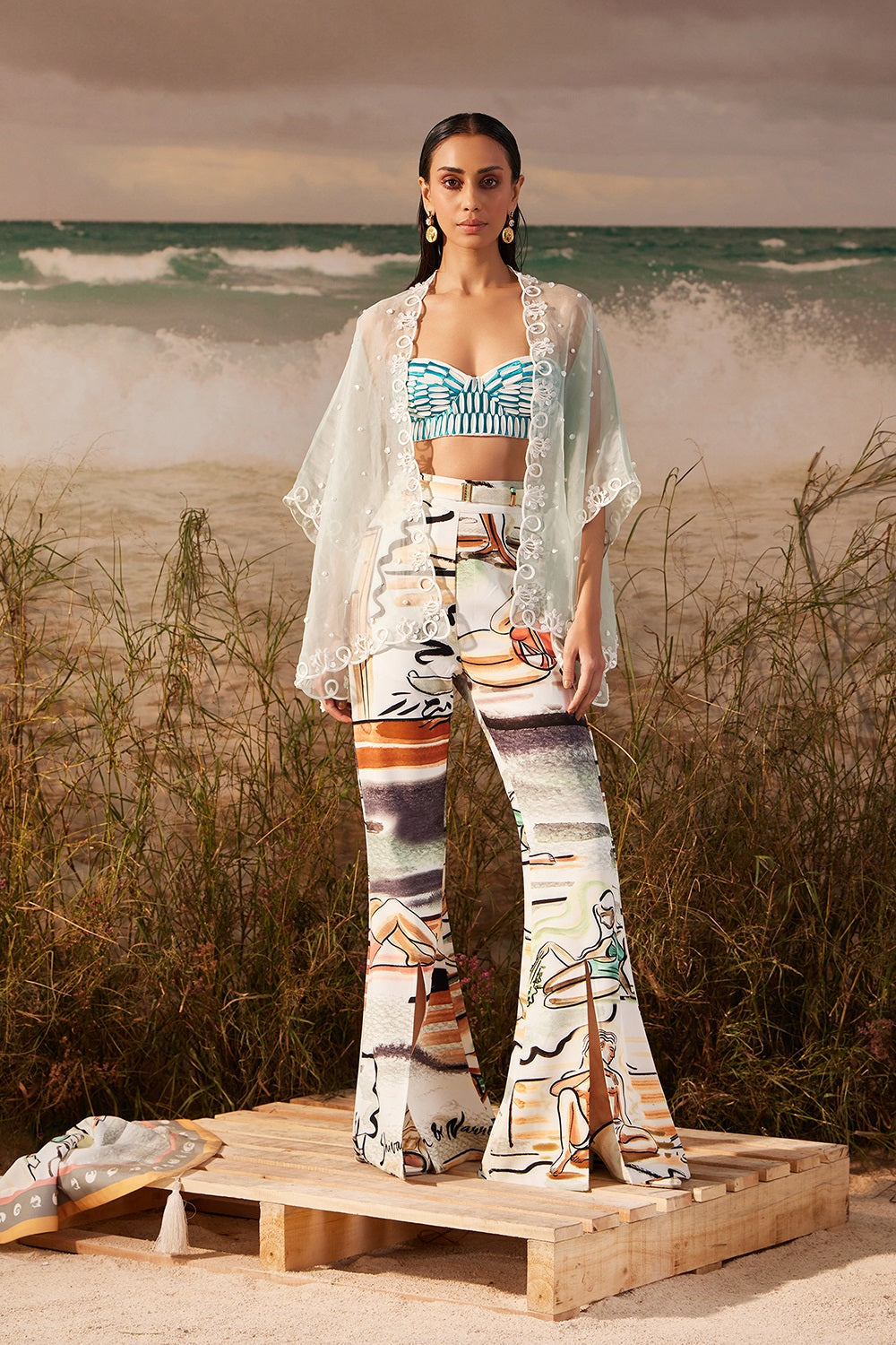 Ivory Petal Skein Bustier is a separate spread across various occasions. Set on finest jersey, it features the series exclusive - hand embellished skeinwork intricately fashioned with thread . Style it with palazzos or tiered skirt to reflect label's glam aesthetic.