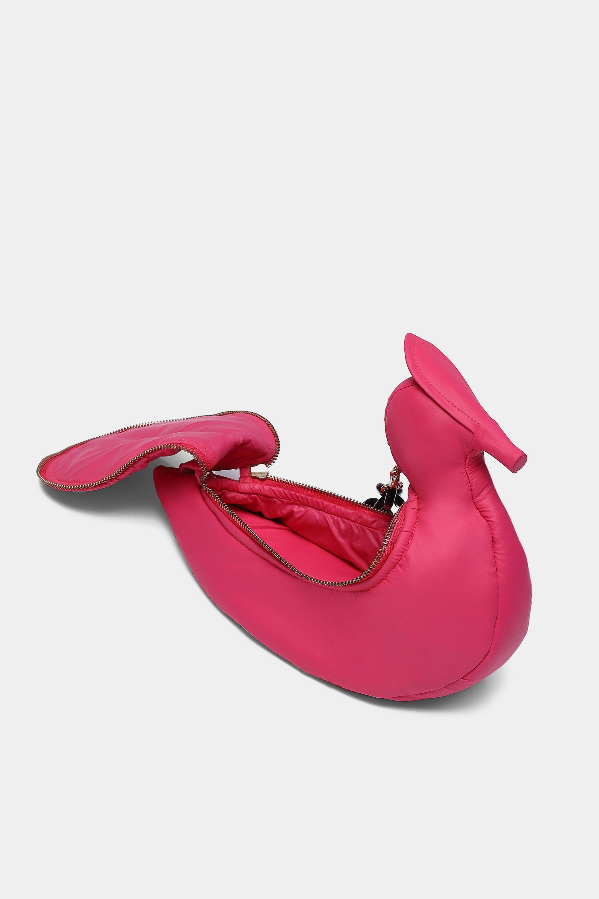 An iconic for the brand, the Olly is Inspired by the distinctive mandarin duck and leaves no room for going unnoticed. Crafted in quilted polyster in joyous shade of pink and topped with a chunky chain strap, the bag offers enough room for your phone, card holder, perfumes and a beauty essentials.
