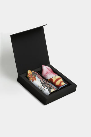The set of two pocket squares comes packed in an elegant, handmade box, ideal for gifting on special occasions.