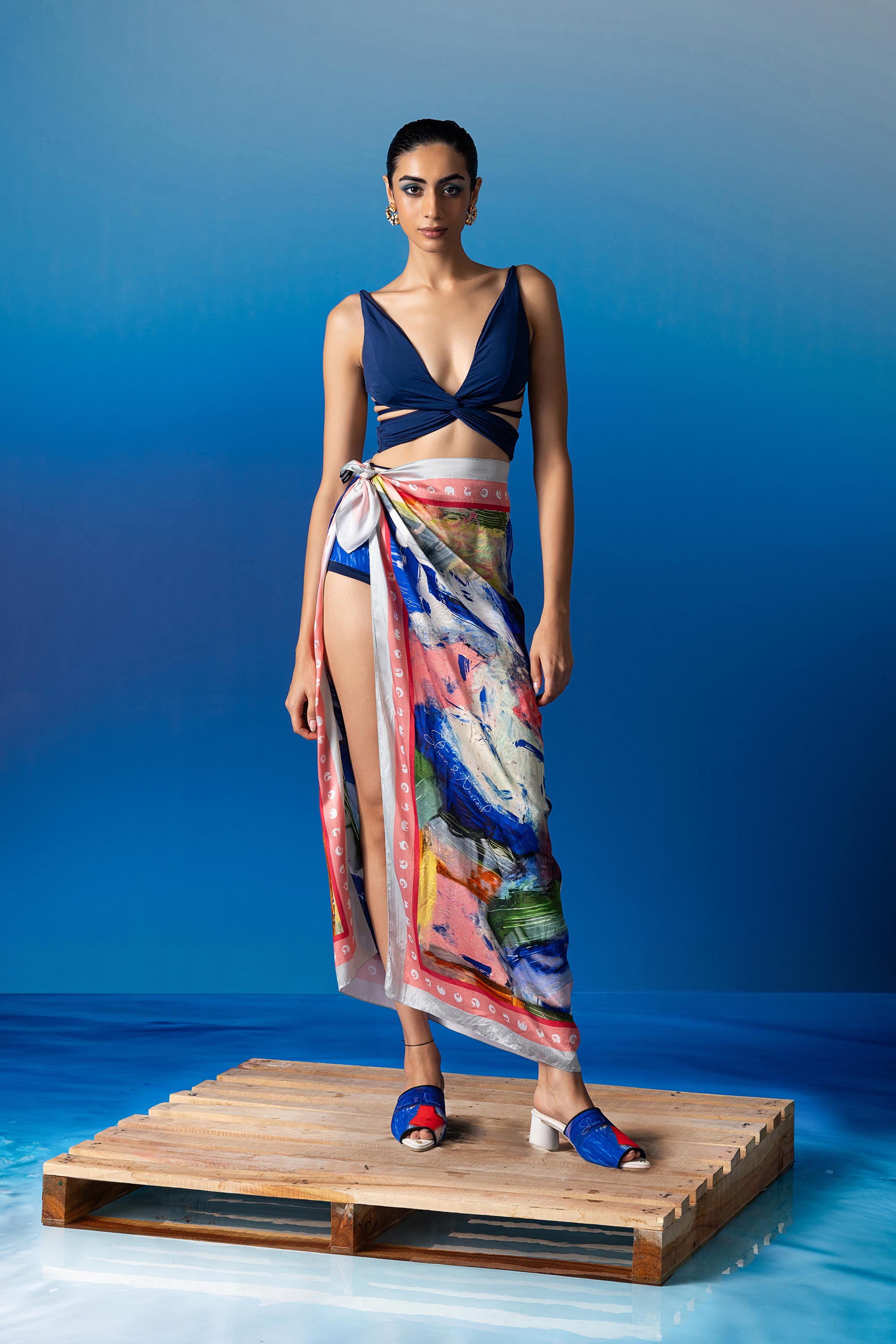 The IconoScarf embodies the brand's art statement with the signature Foxfires print on a luxurious silk surface. Wear it as a swim cover-up or drape it as a top or even wear it around the head as a covering, the usage is plentiful. The IconoScarf works beautifully as a discerning gift to loved ones.
