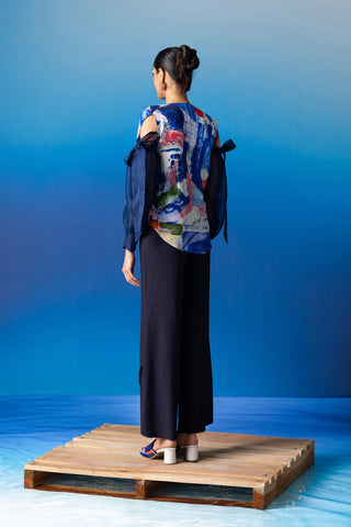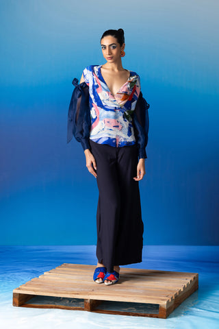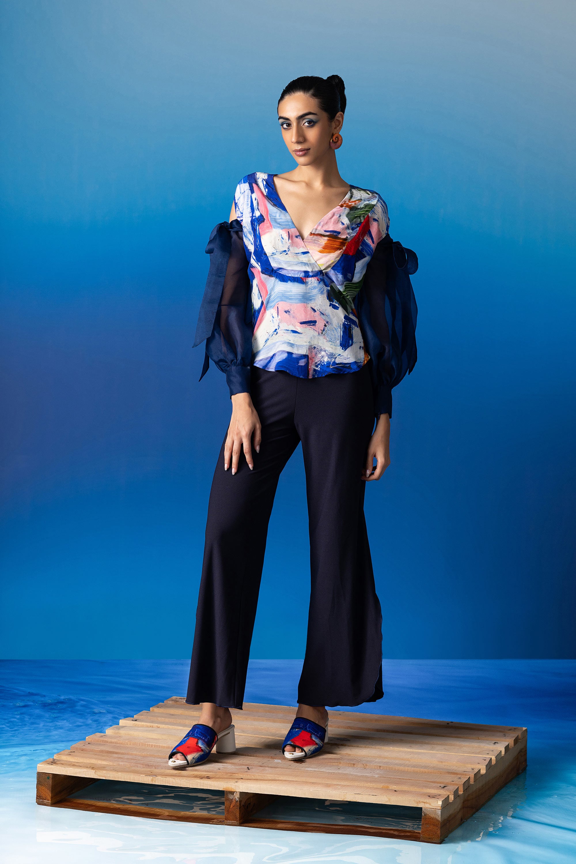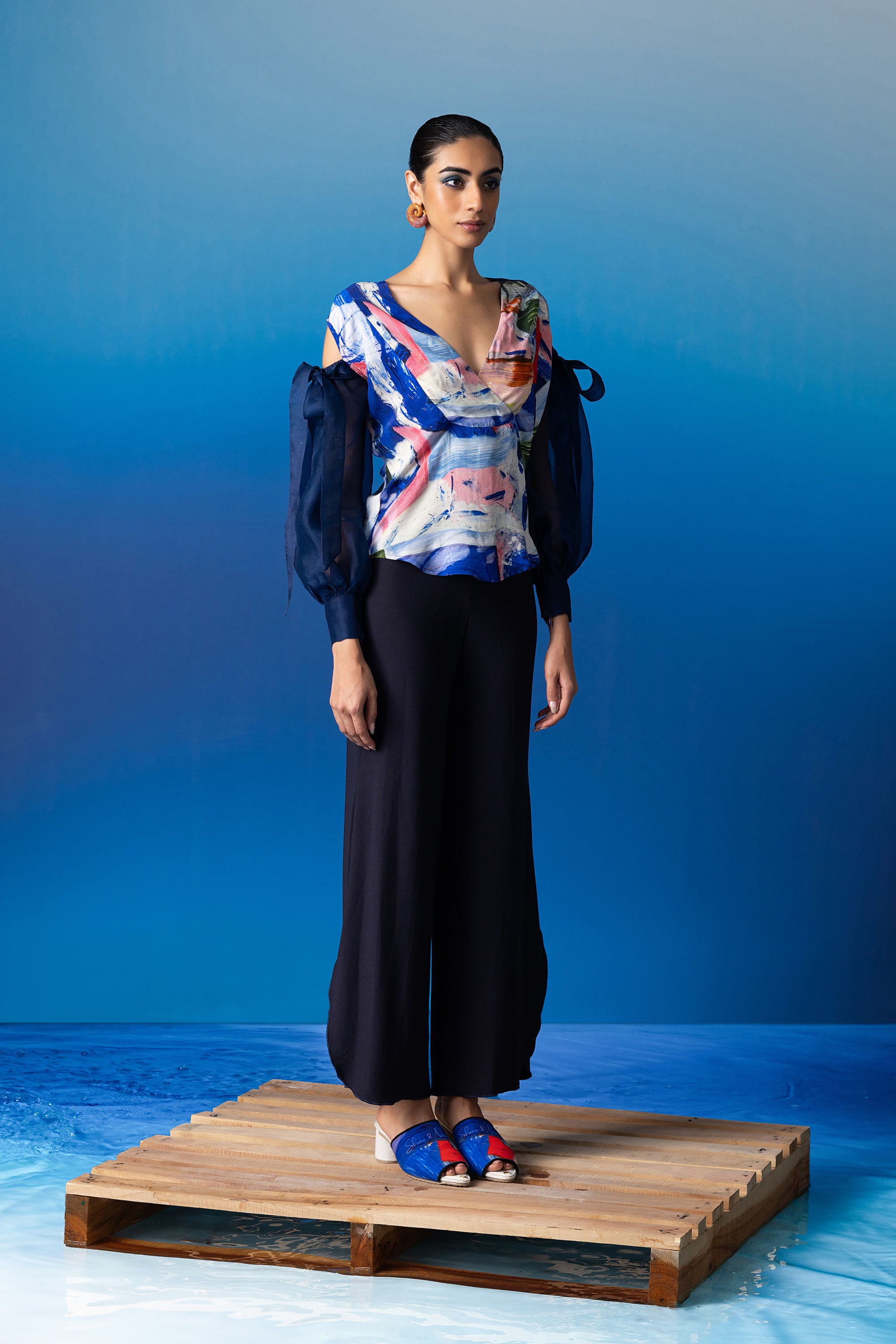 The Sapphire Resort Palazzos, meticulously tailored to grace the silhouette with its high-waisted design and adorned with a coordinating iconoclasp belt for an added touch of flair. This classic piece seamlessly transitions from casual outings to evening soirées, offering versatility and timeless style.
