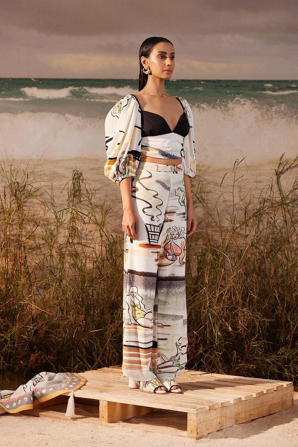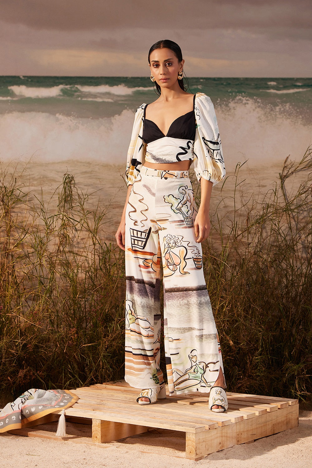 Crafted from stretch jersey, Saun Resort Palazzos are an easy style separate. Shaped to sit high on waist, it is elevated with matching belt. Style it with coordinating top or cape for an effortless vacation edit