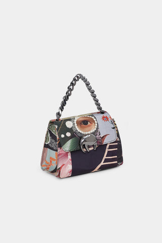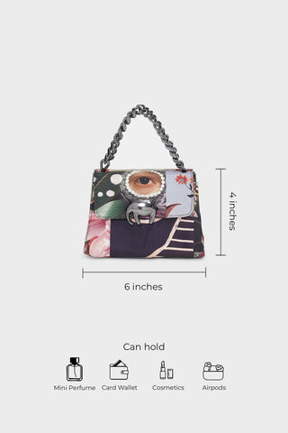 Micro size for maximum impact, the opulent Pomsky bag instantly elevates any ensemble with its touch of glamour. Crafted from sumptuous leather and adorned with chrome gold-finish hardware, this exquisite accessory is ideal for evening occasions, offering both style and functionality. Perfect for carrying essentials, from makeup to cherished trinkets, the Pomsky seamlessly blends elegance with practicality.