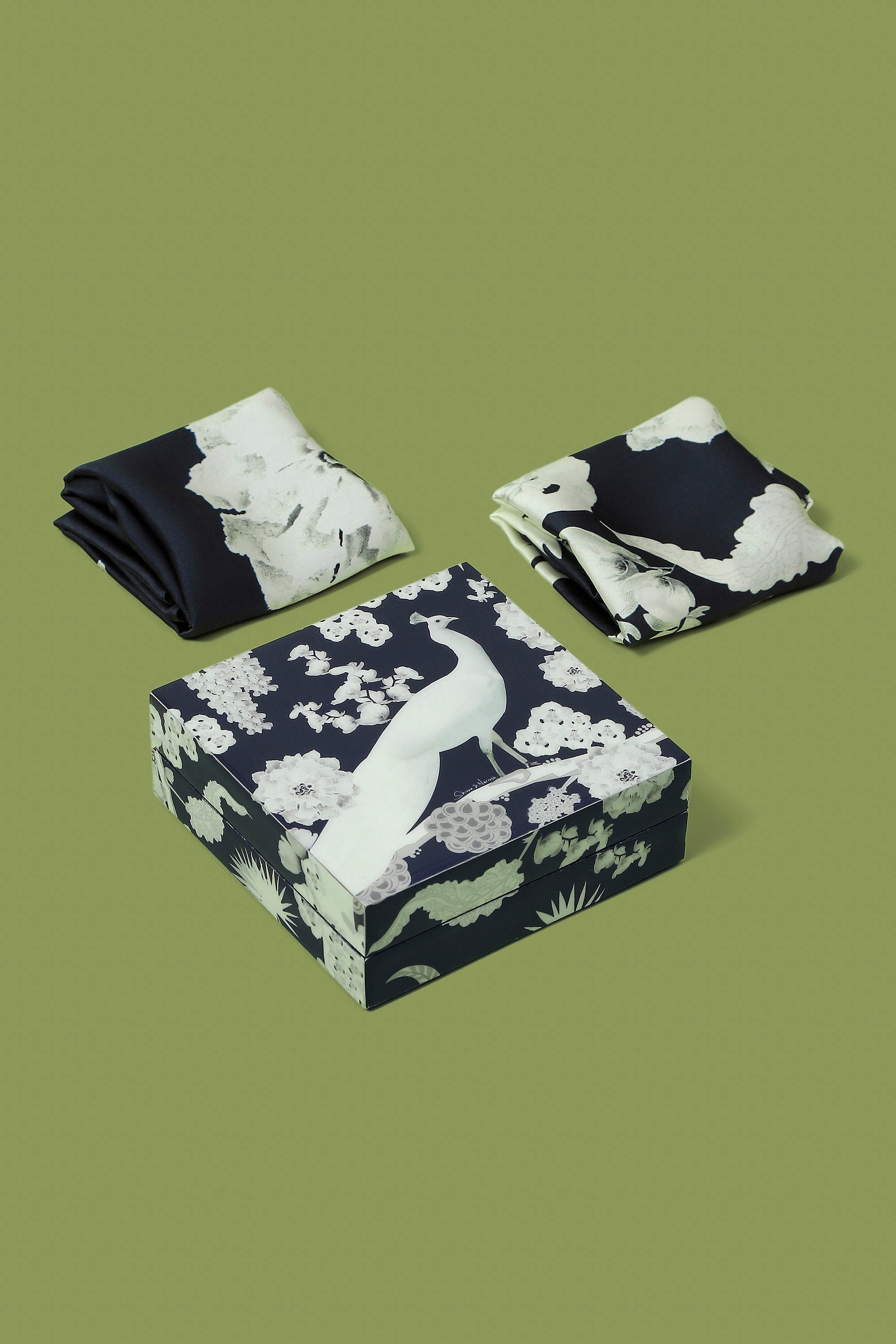 The exquisite Izu Juno Art Box is crafted from durable engineered wood and finished with glossy resin in striking elements of signature art print, Izu Juno. The box comes with two silk pocket squares making it a refined gifting essential or a timeless personal keepsake.