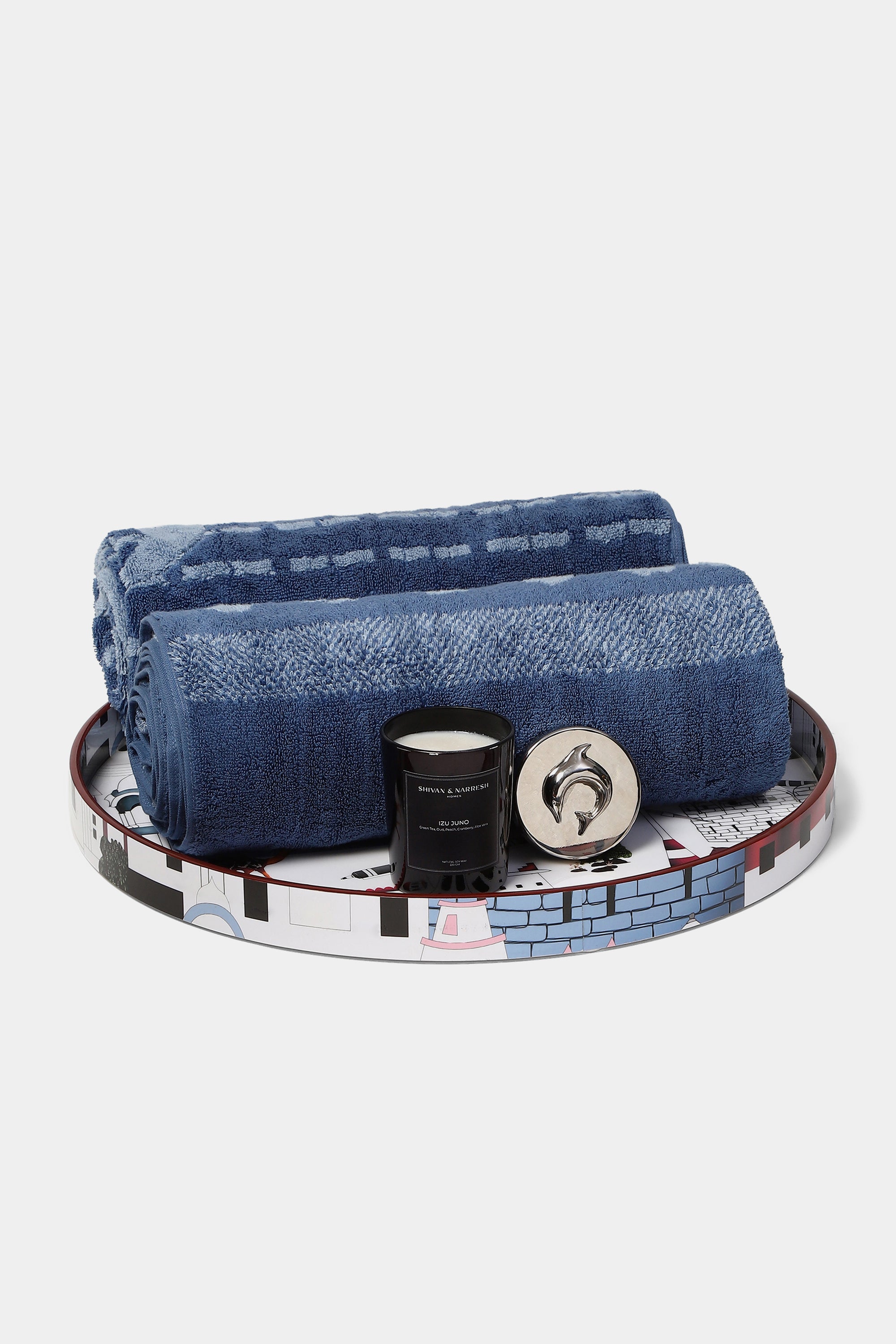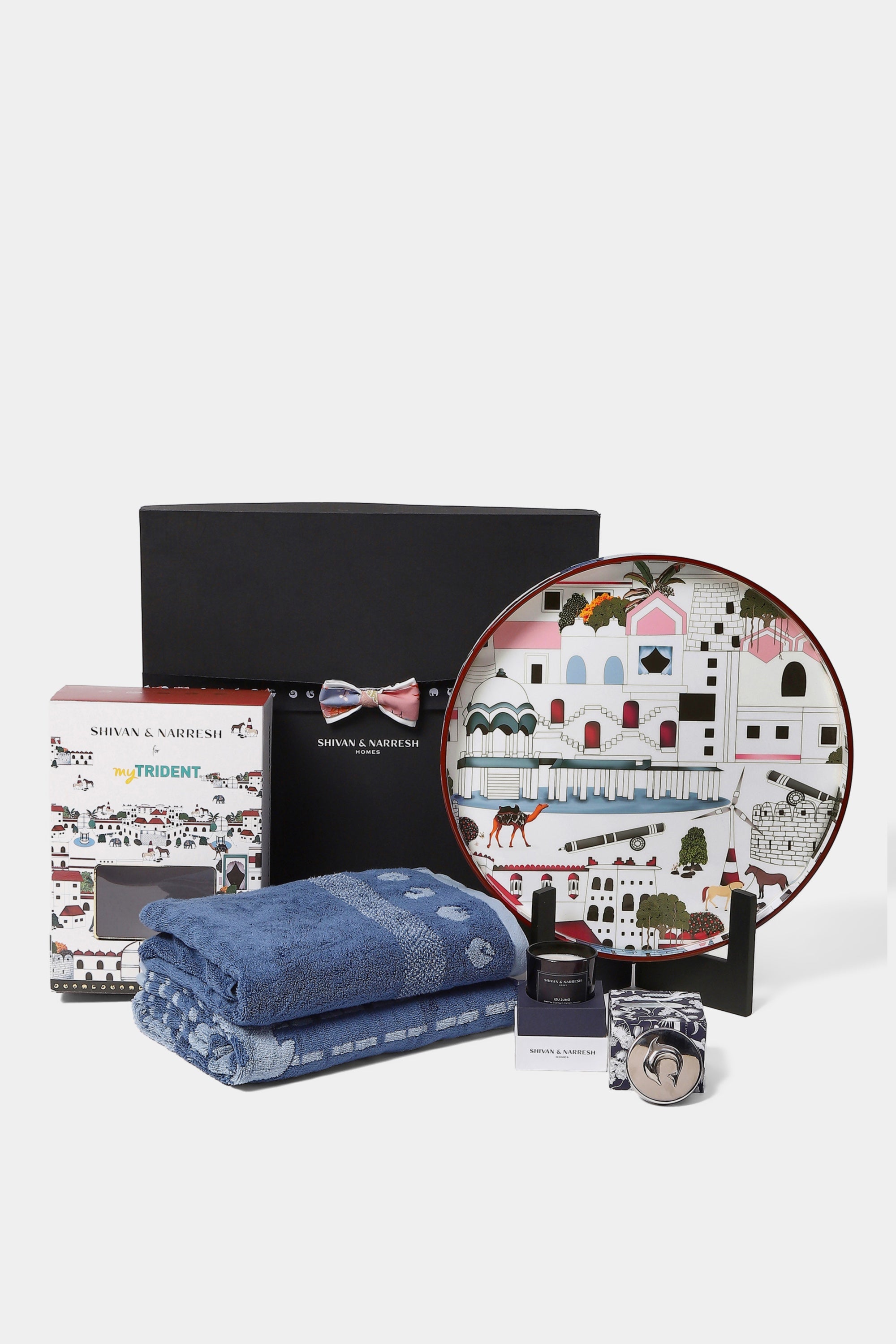 Designed to pamper and delight, the Jaiscape Exquisite Gift Set is a luxurious indulgence, This thoughtfully curated set features a medium rondelle tray, accompanied by set of plush towels and a fragrant votive candle. Encased in opulent individual packaging, it makes a perfect gift for any season.