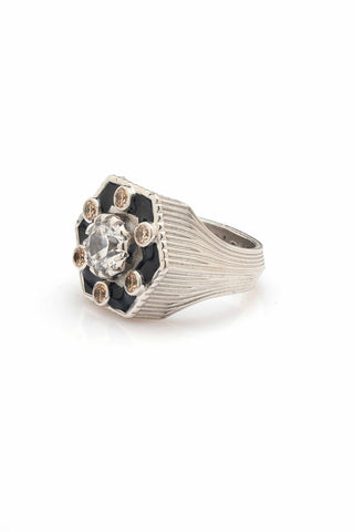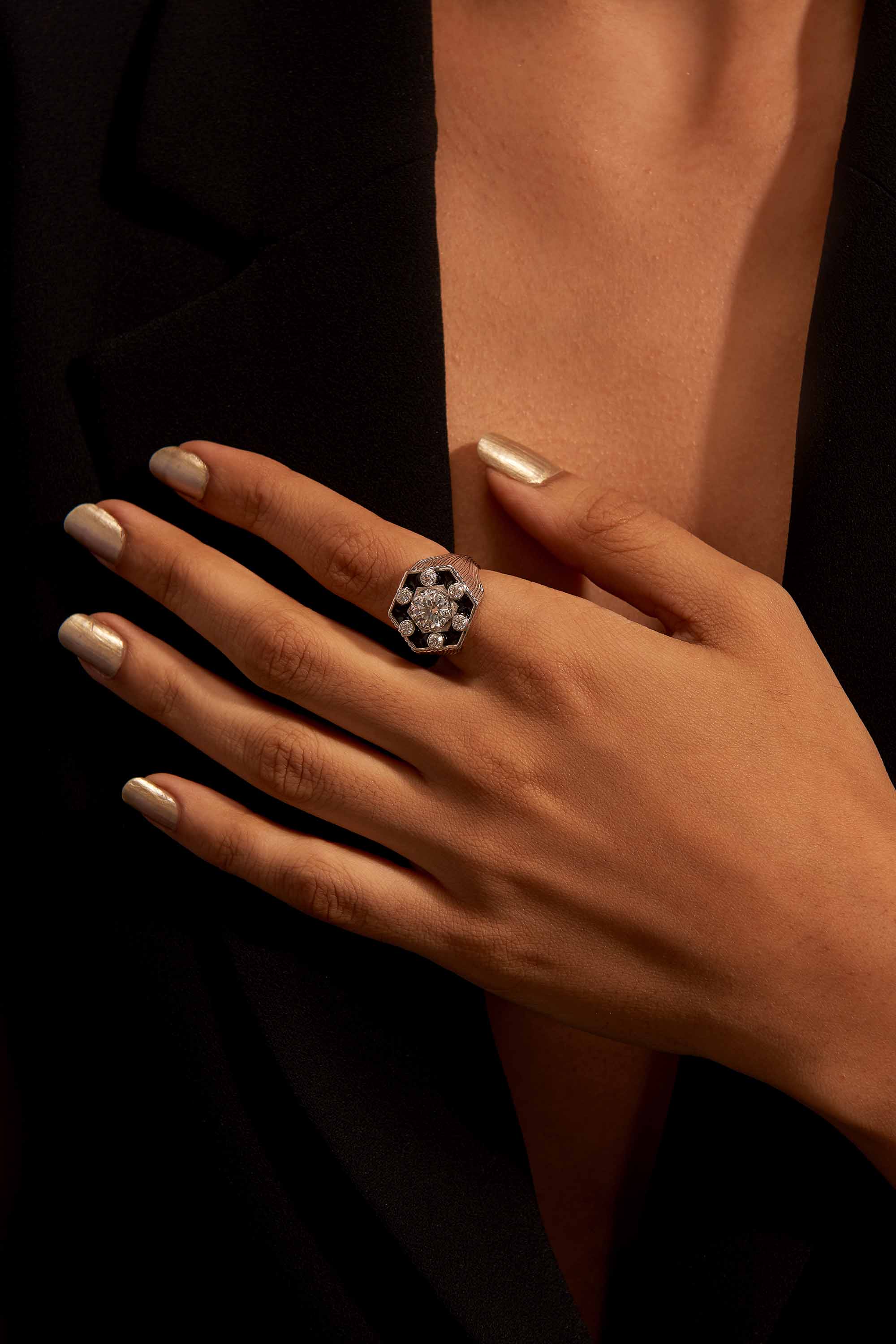 This iconic ring is made with sparkling Morning Star stones coupled with enamel work. It can be styled effortlessly for both day and evening functions. Made with recycled brass and equipped with above-industry standard quality and thickness of protective layering, and anti-allergen coating, with lifetime durability on us.