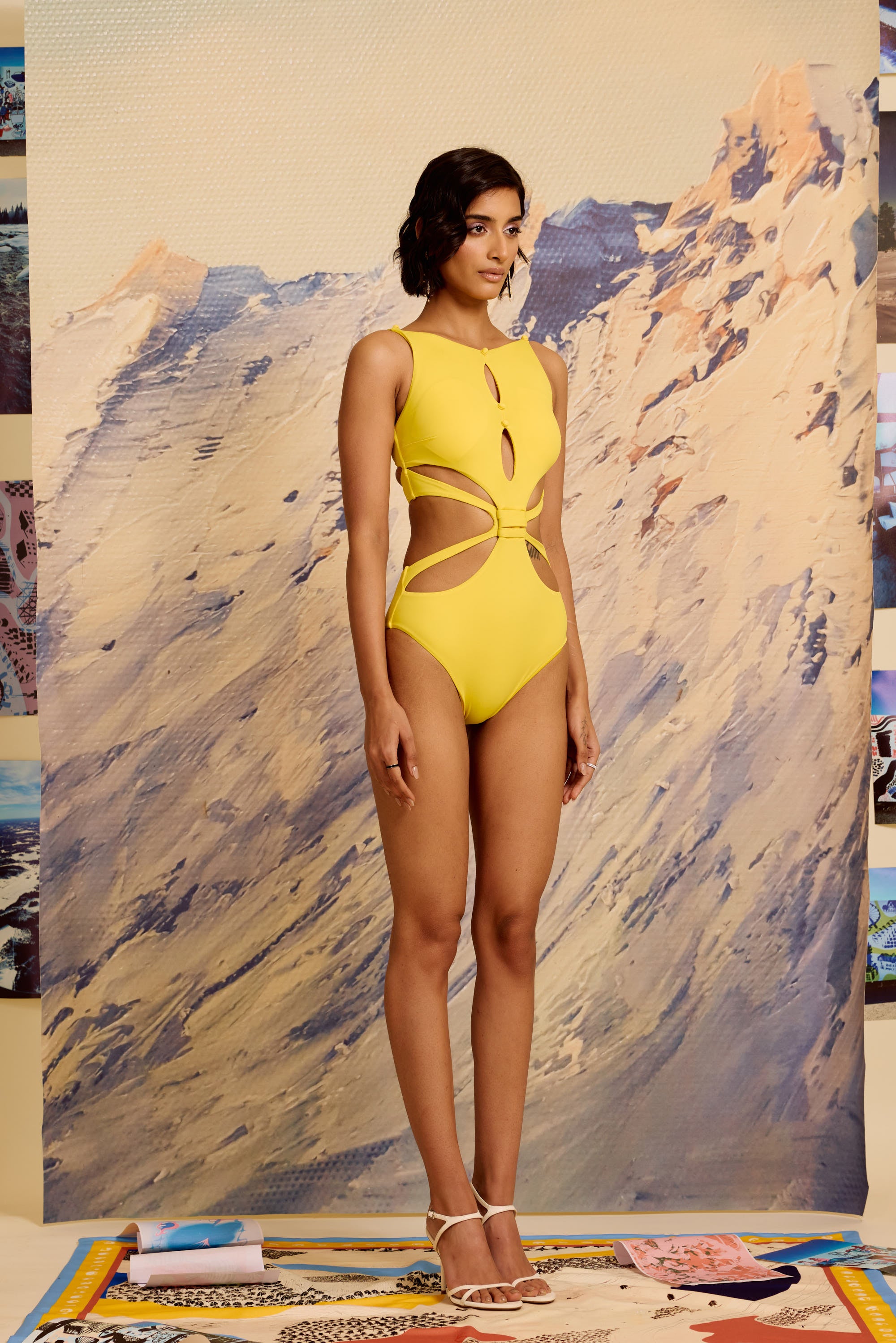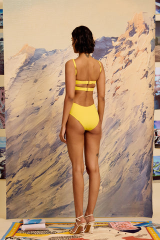 Maracu Slashed Trikini is constructed to conceal and reveal in all the right places. Made from Italian jersey in vibrant yellow, the waist cut outs and center slash details highlights the bust and body contour, creating the coveted feminine sculpt, apt for days of lounging by the pool or beach.