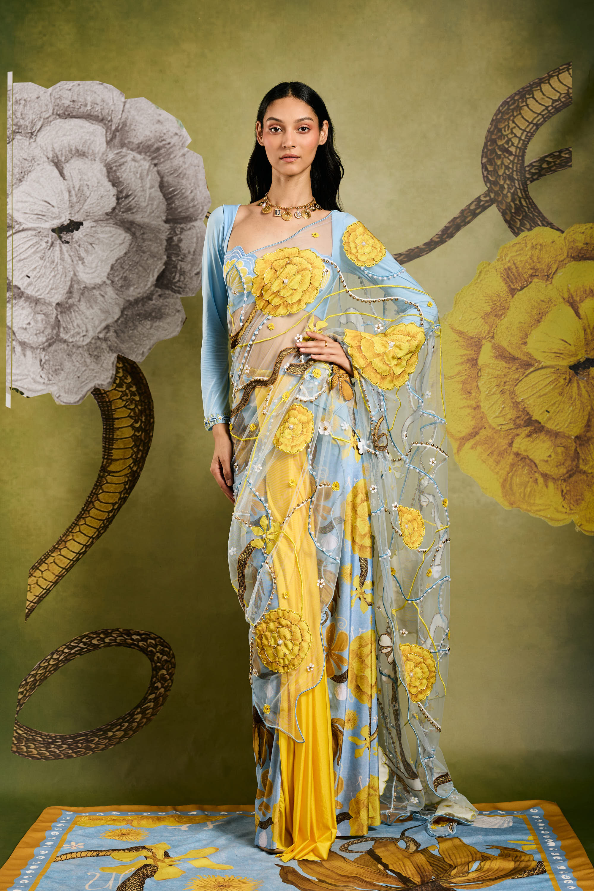 Primordi Iris Embellished Tailored Sari with Cloud Shell Blouse