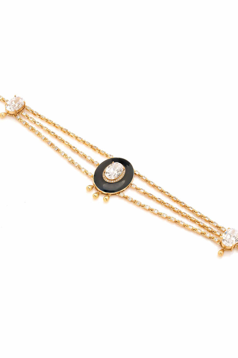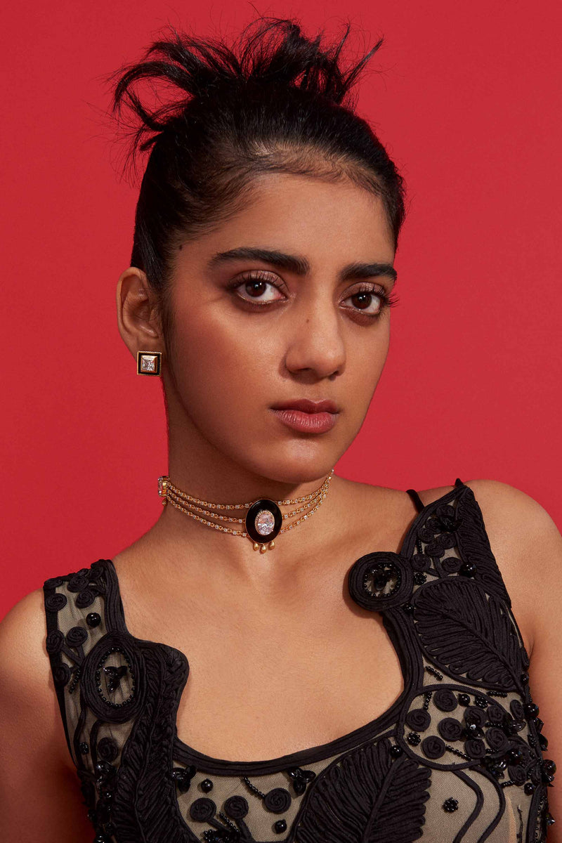 This classic choker is made with Morning Star stones coupled with chic enamel work. It can be styled in multifarious ways on both ethnic and western wear. Made with recycled brass and equipped with above-industry standard quality and thickness of protective layering, and anti-allergen coating, with lifetime durability on us.