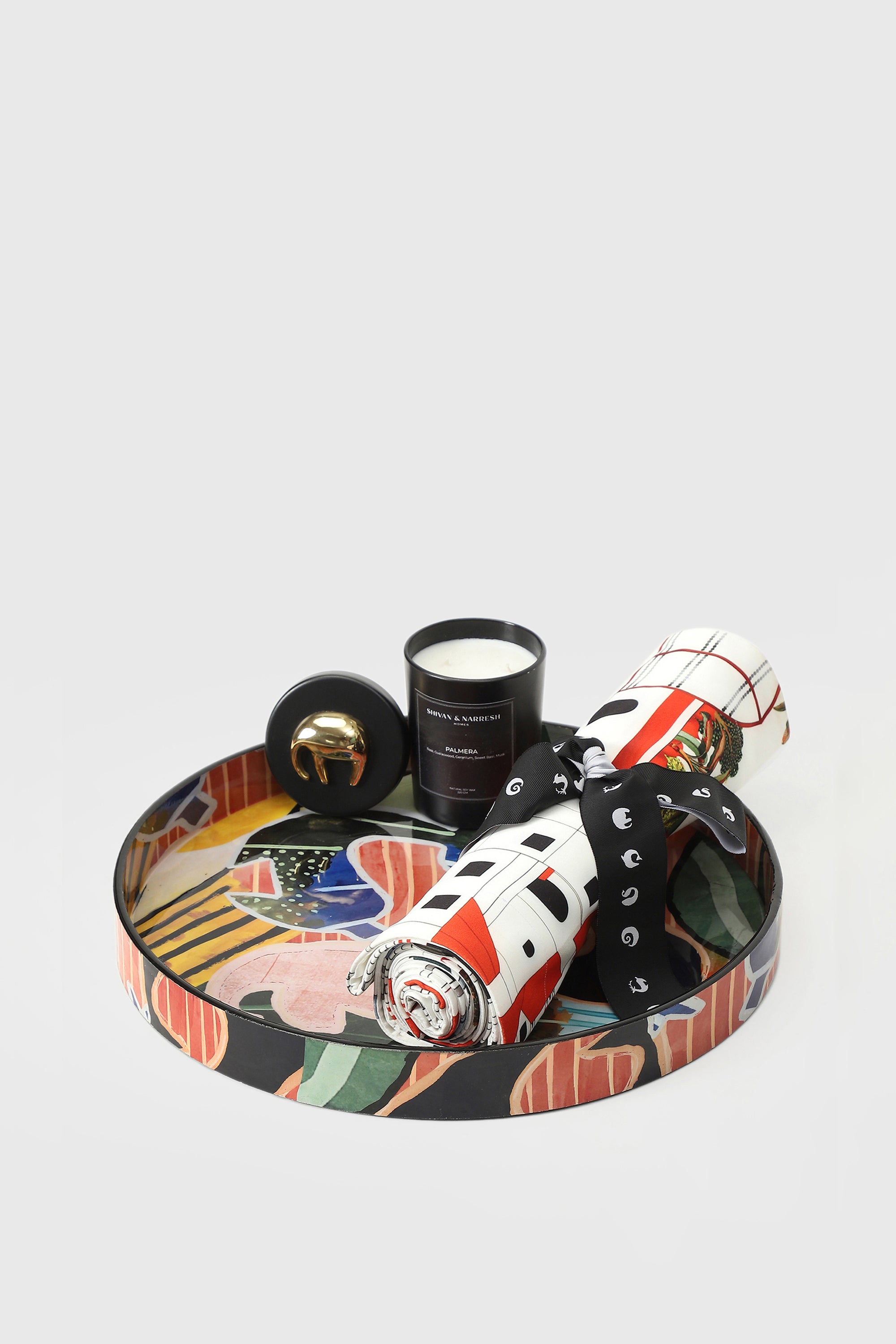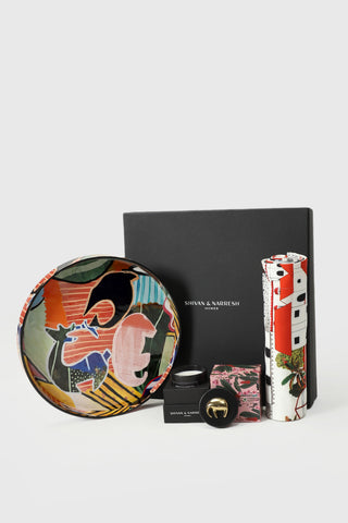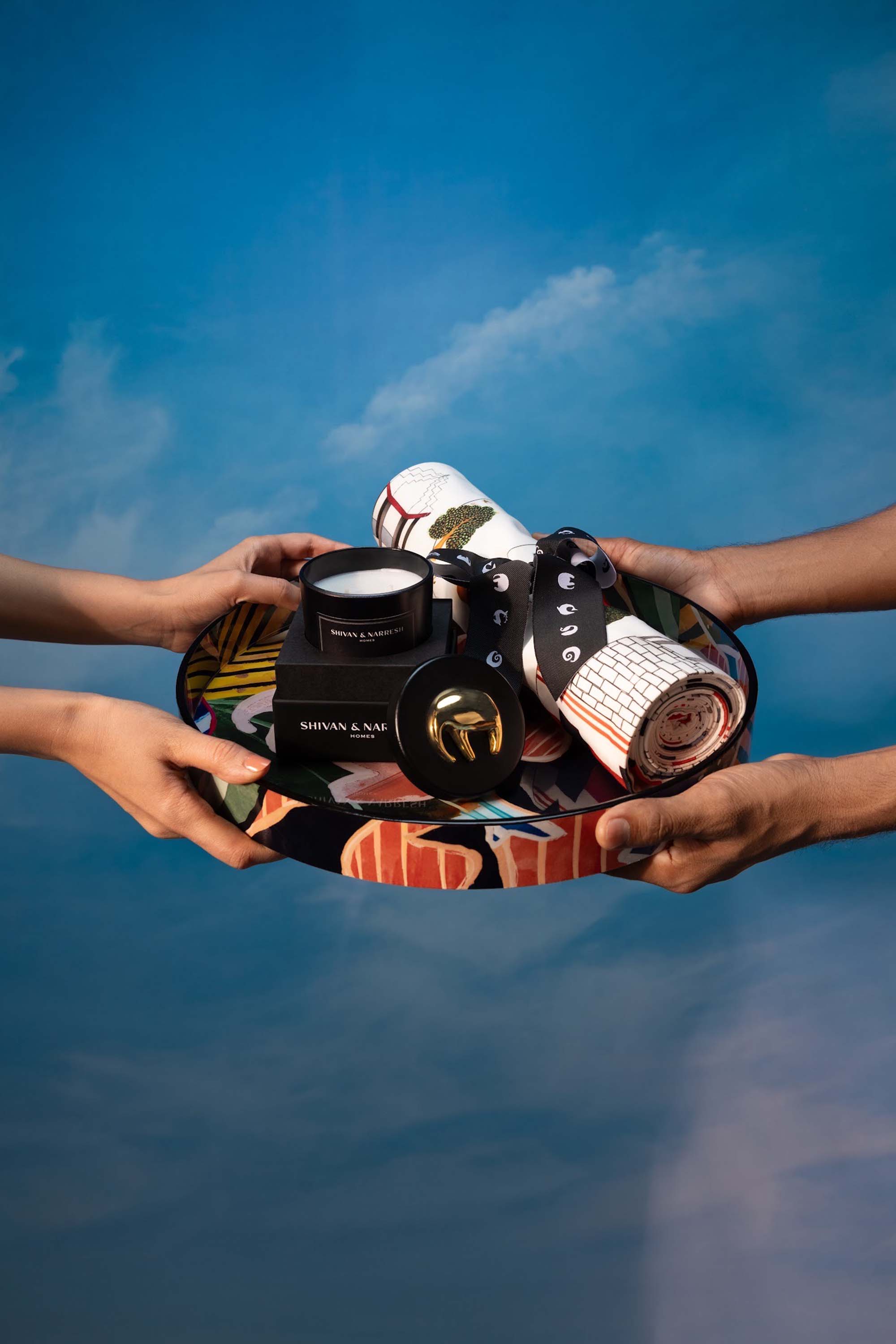 Add joy to every celebration with Iconomash Home Gift Set. With an amalgamation of Iconomash medium Rondelle tray, Jaiscape table runner and Palmera Votive candle, discover the fine gifting range adorned in brand's signature prints. Encased in luxurious individual packaging, it is perfect for every season.