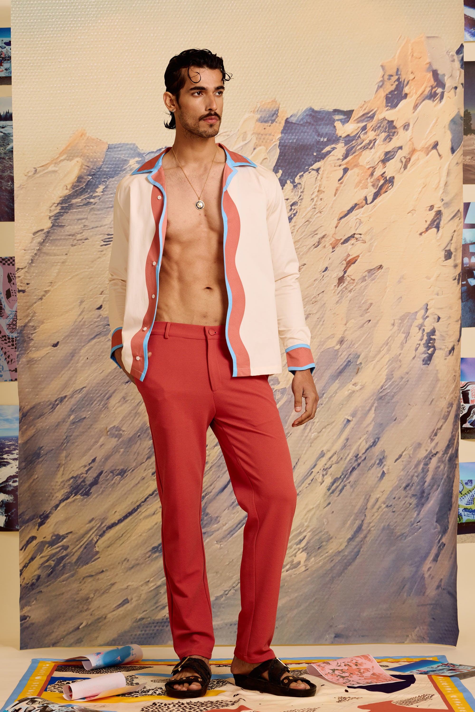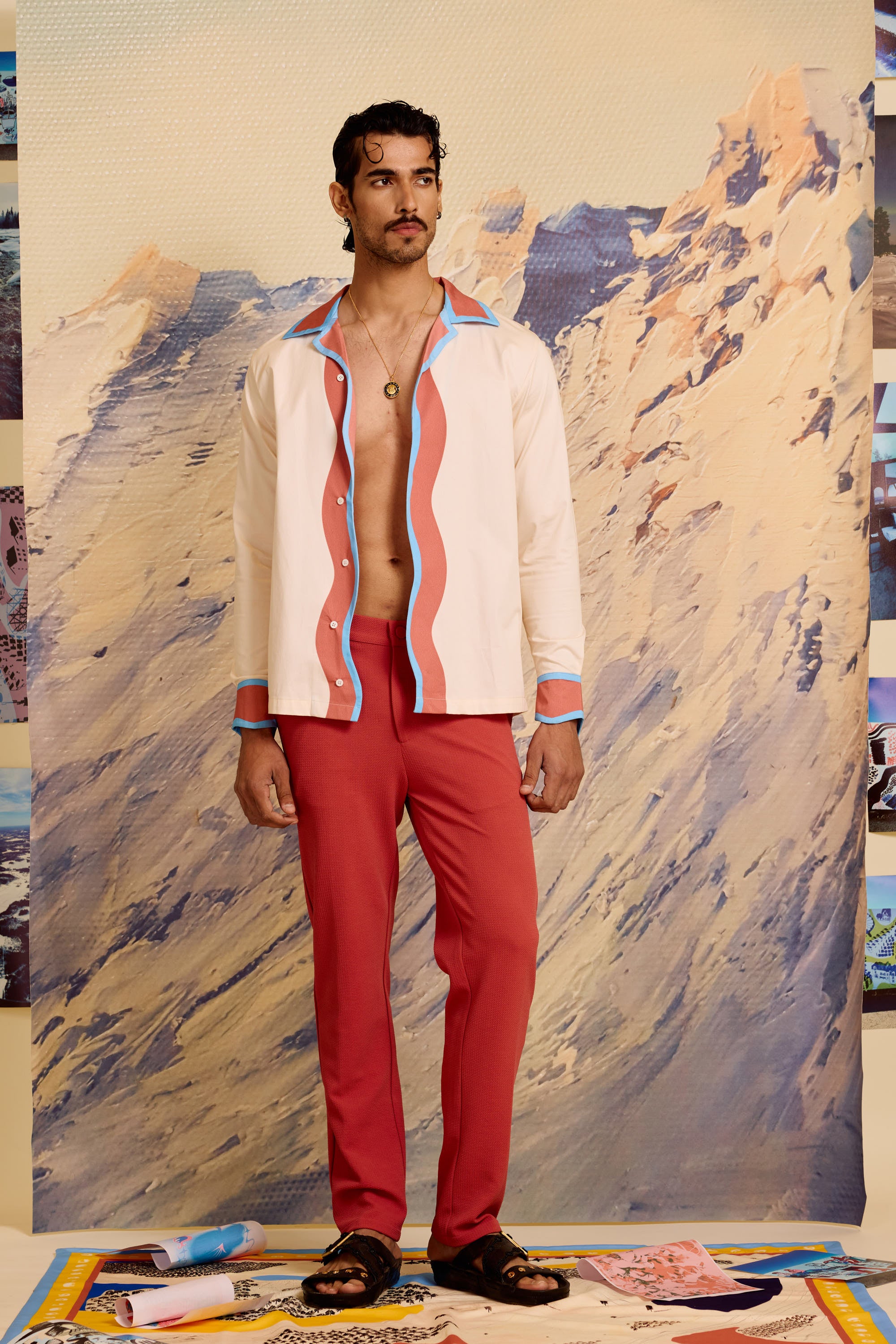 Designed for versatility, Ivory Meandering Strokes Shacket embodies effortless elegance. Crafted from cotton satin, the relaxed silhouette features distinctive strokes accents along the front placket and collar. The long sleeves with matching detailed cuffs allow for both rolled and full-length styling options. The lightweight fabric ensures breathable comfort that transitions seamlessly from poolside lounging to resort evenings.