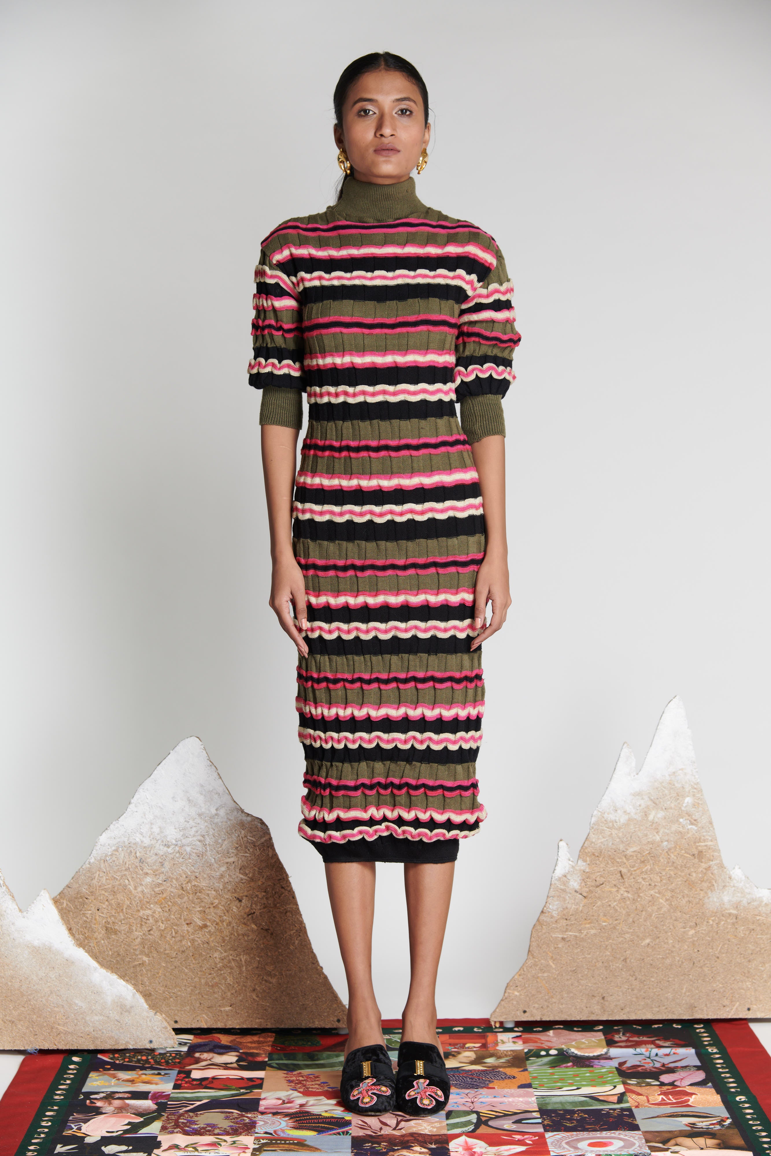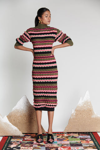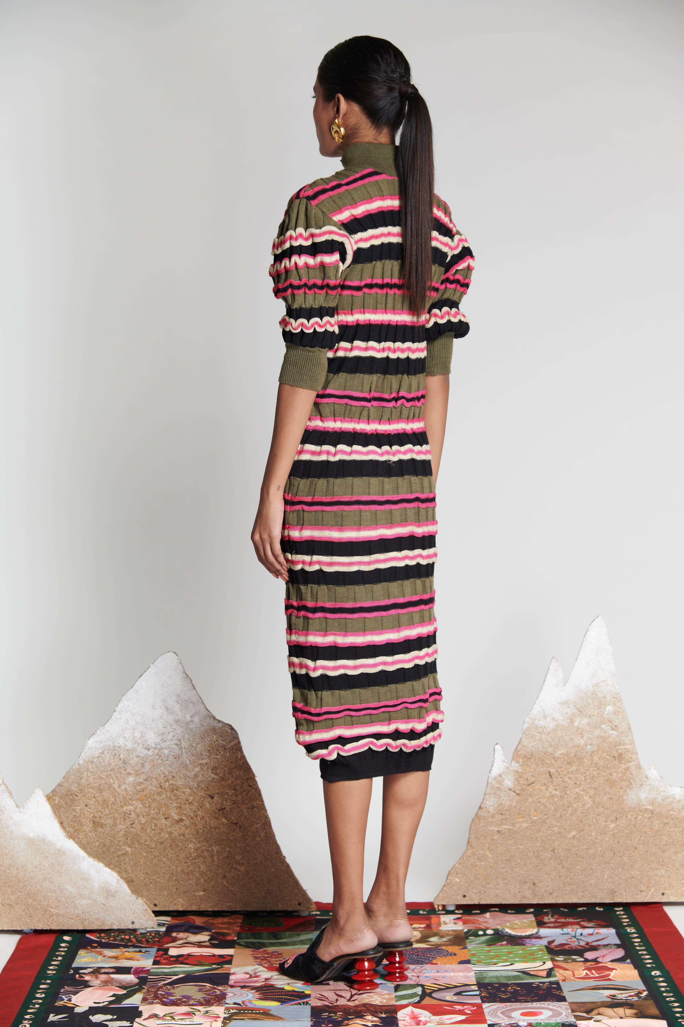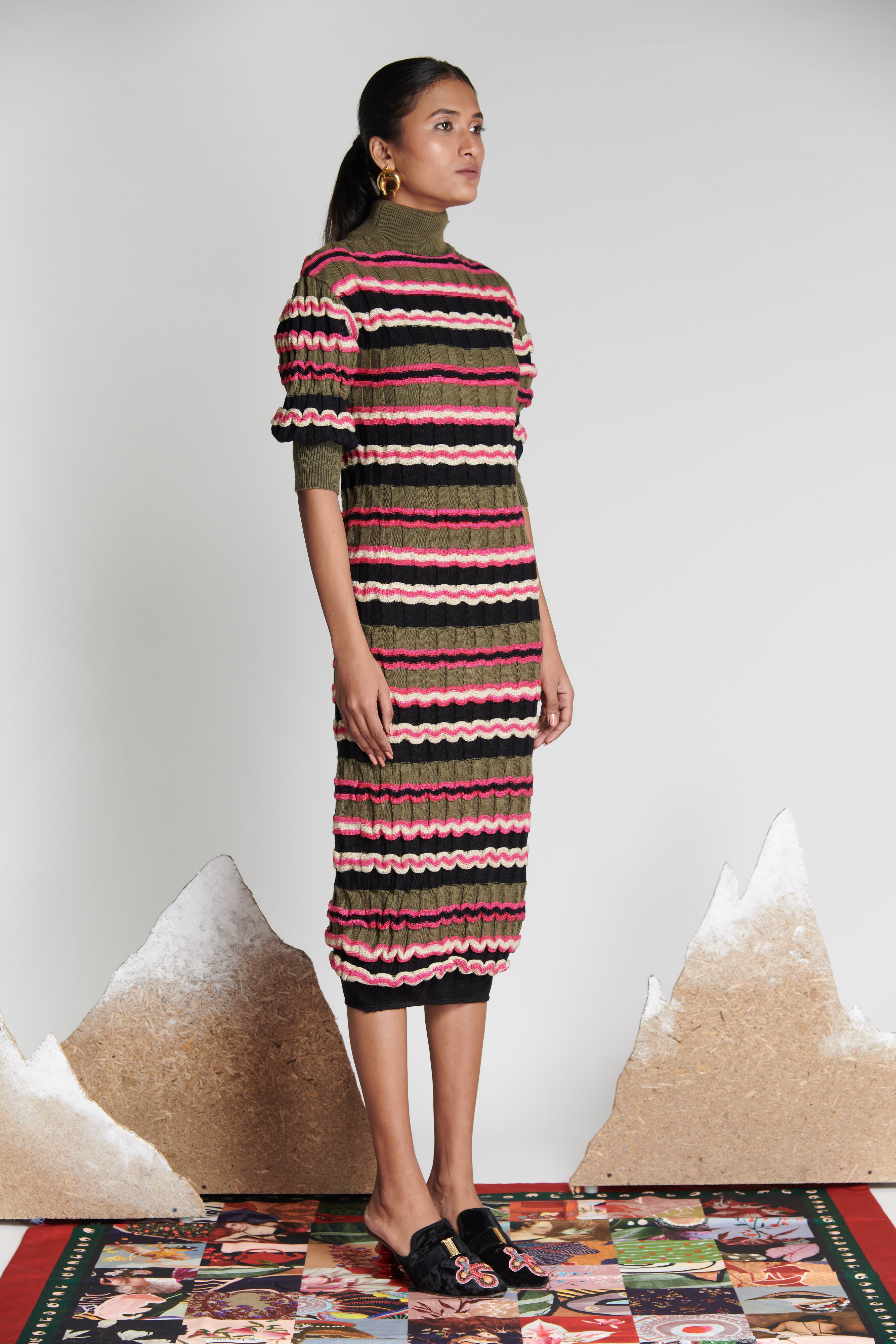 The BotanEye Striped Turtleneck Knit Dress accords a luxe affair with a stretch-knit fit designed to complement your form. Featuring a mid-length silhouette with a distinguished turtleneck, this style can be dressed up or down.