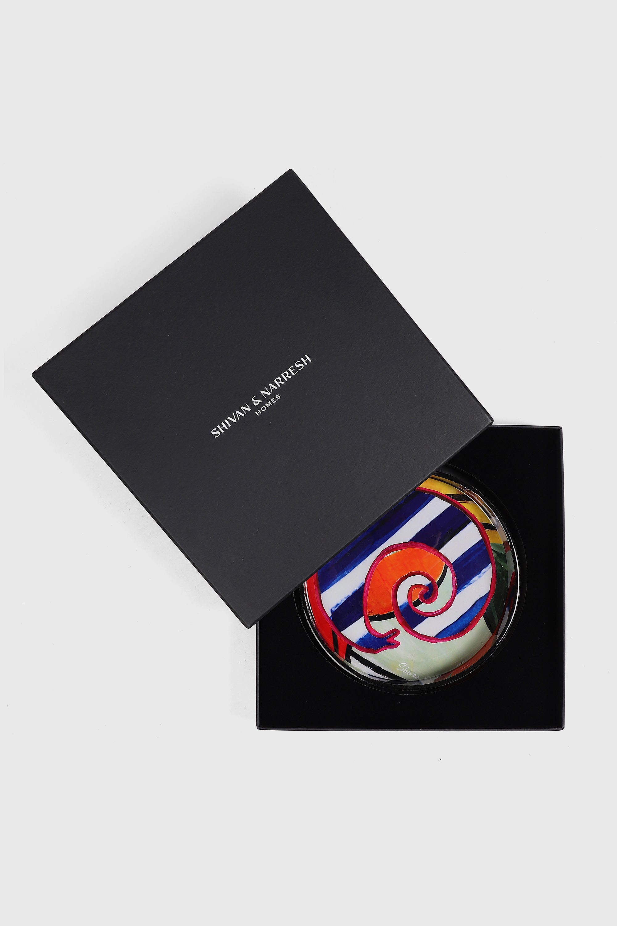 An eclectic addition to tablescapes, the Rondelle Tray features the vibrant energy of the Iconomash print of the Iconoscape Series. The tray can be used for service as well as for display with its complimentary wooden stand. With a sophisticated box packaging, the trays are safe in storage as well as for gifting.