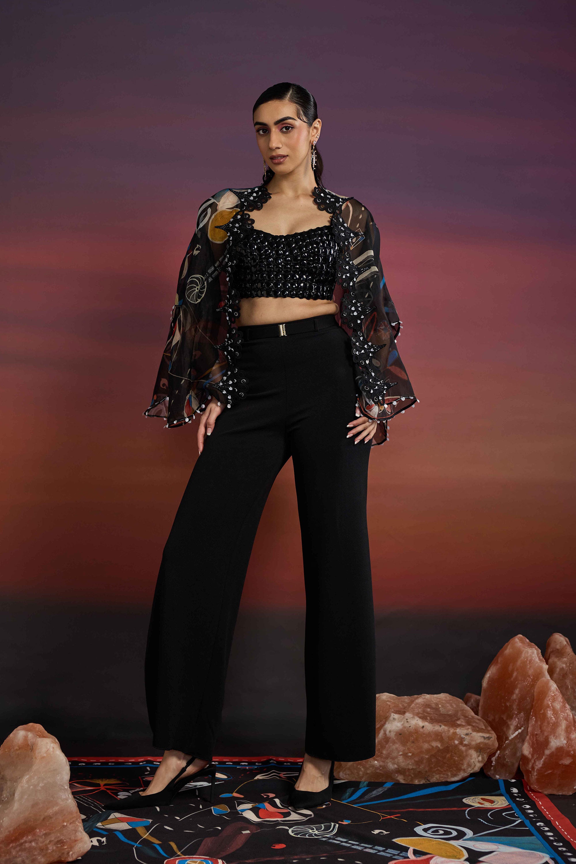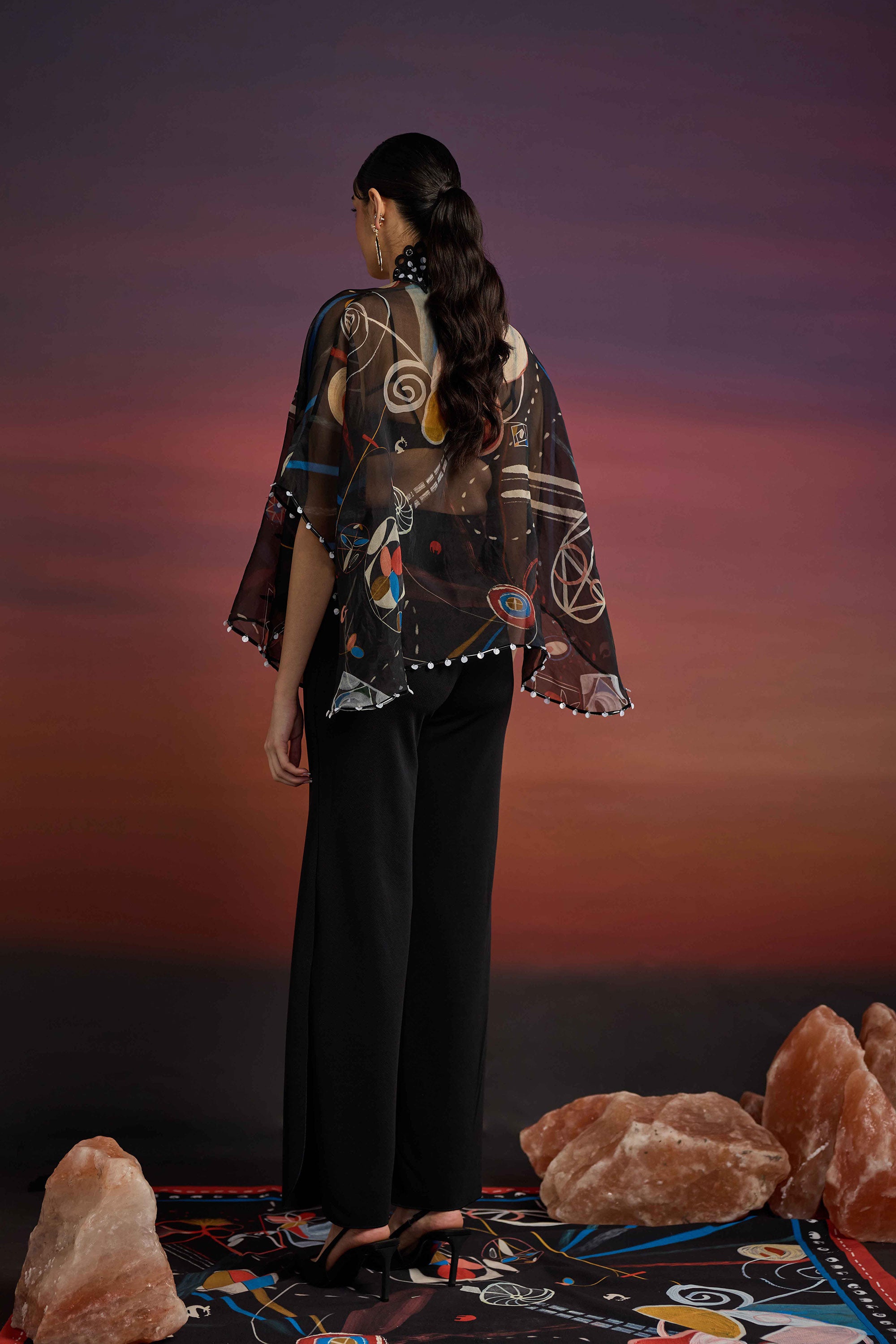 A one-of-a-kind Shivan & Narresh separate, the Mysterique Fleur Sheer Cape is a striking style rendered in silk organza and intricately edged in handcrafted skeinwork. Draped to fall gently over the frame, the cape can be styled with a myriad of resortwear and celebration wear styles.
