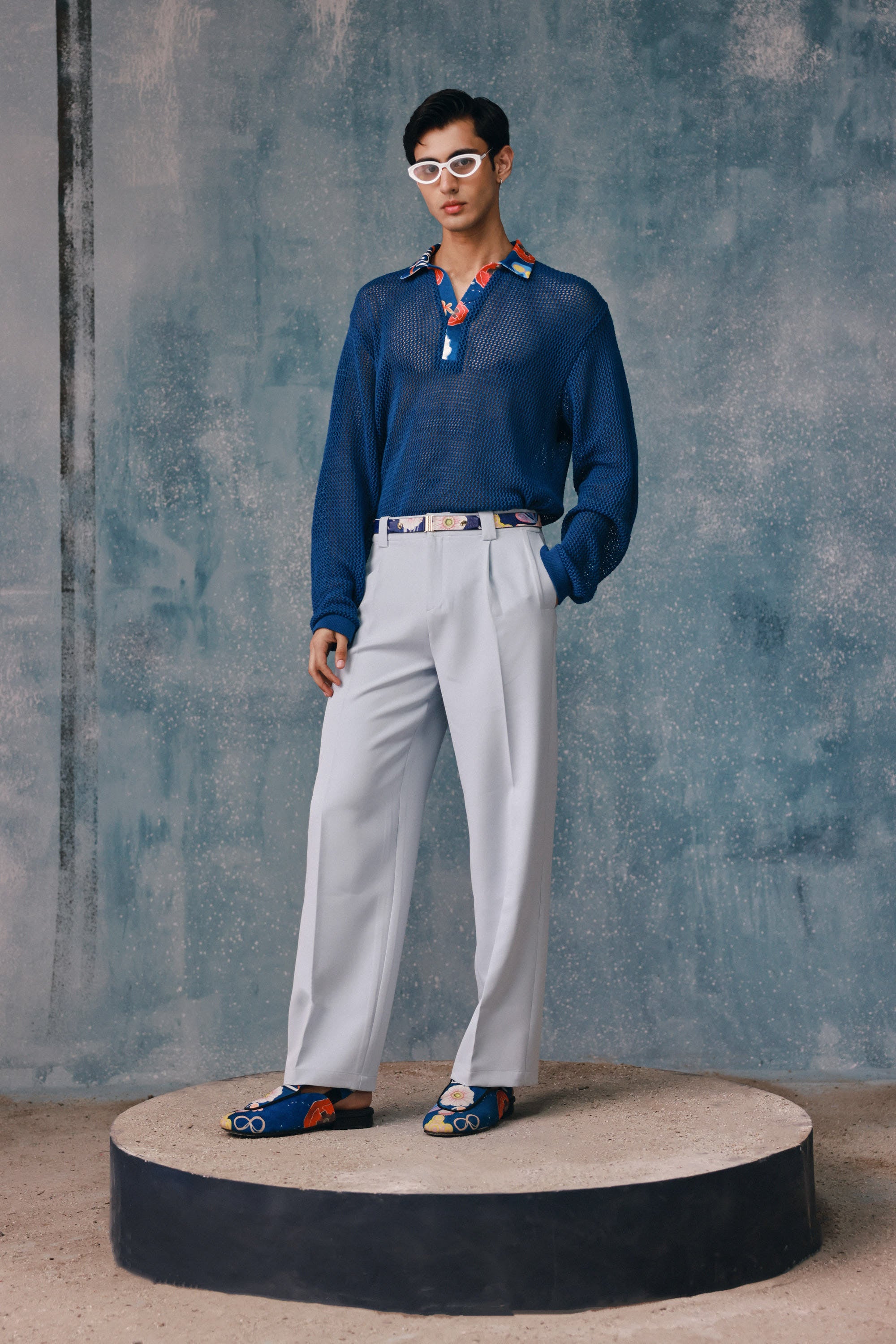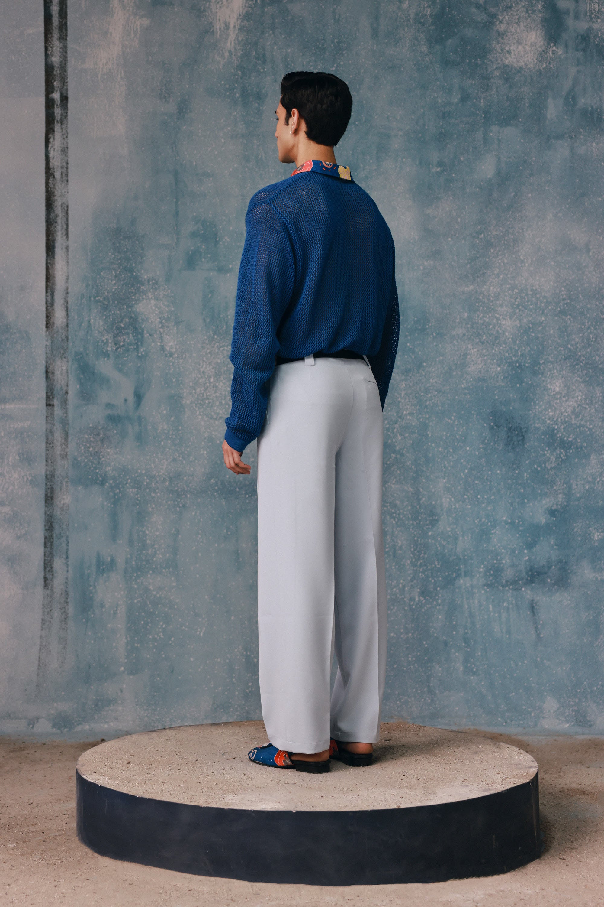 Designed with a relaxed wide-leg silhouette, these trousers introduce ease into tailored dressing. Balanced proportions allow effortless pairing with both structured shirts and relaxed knits, making them a versatile holiday essential.