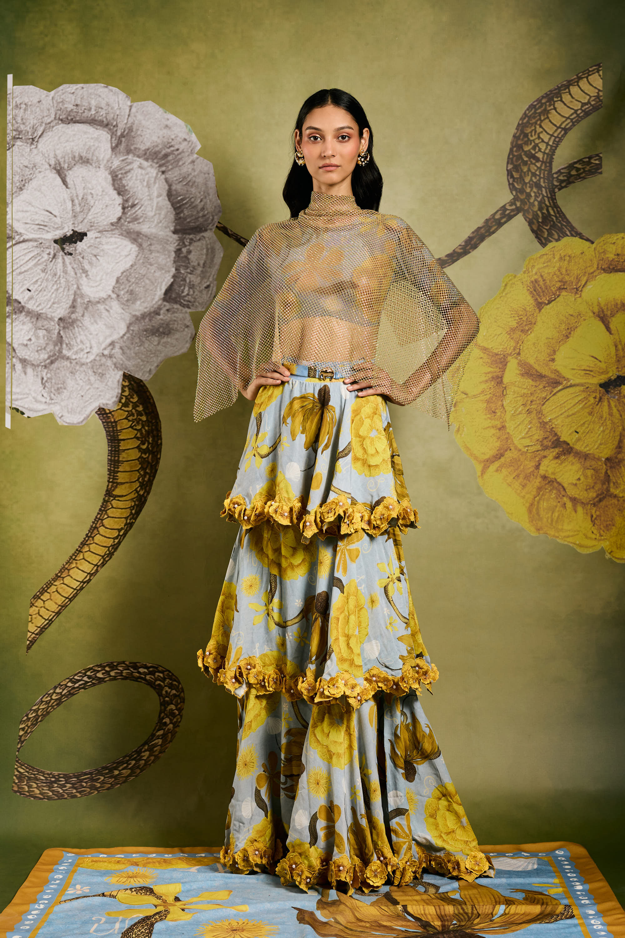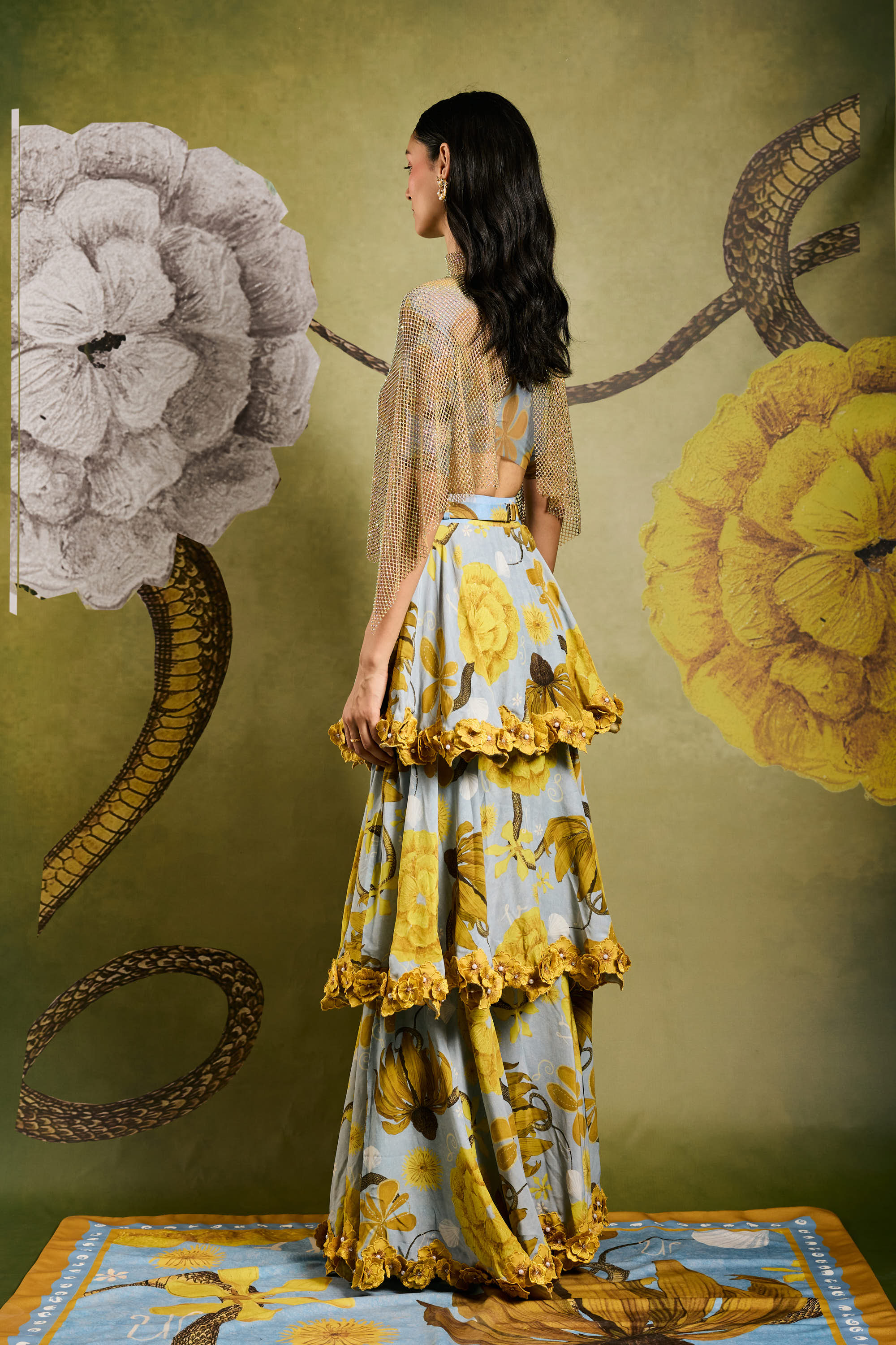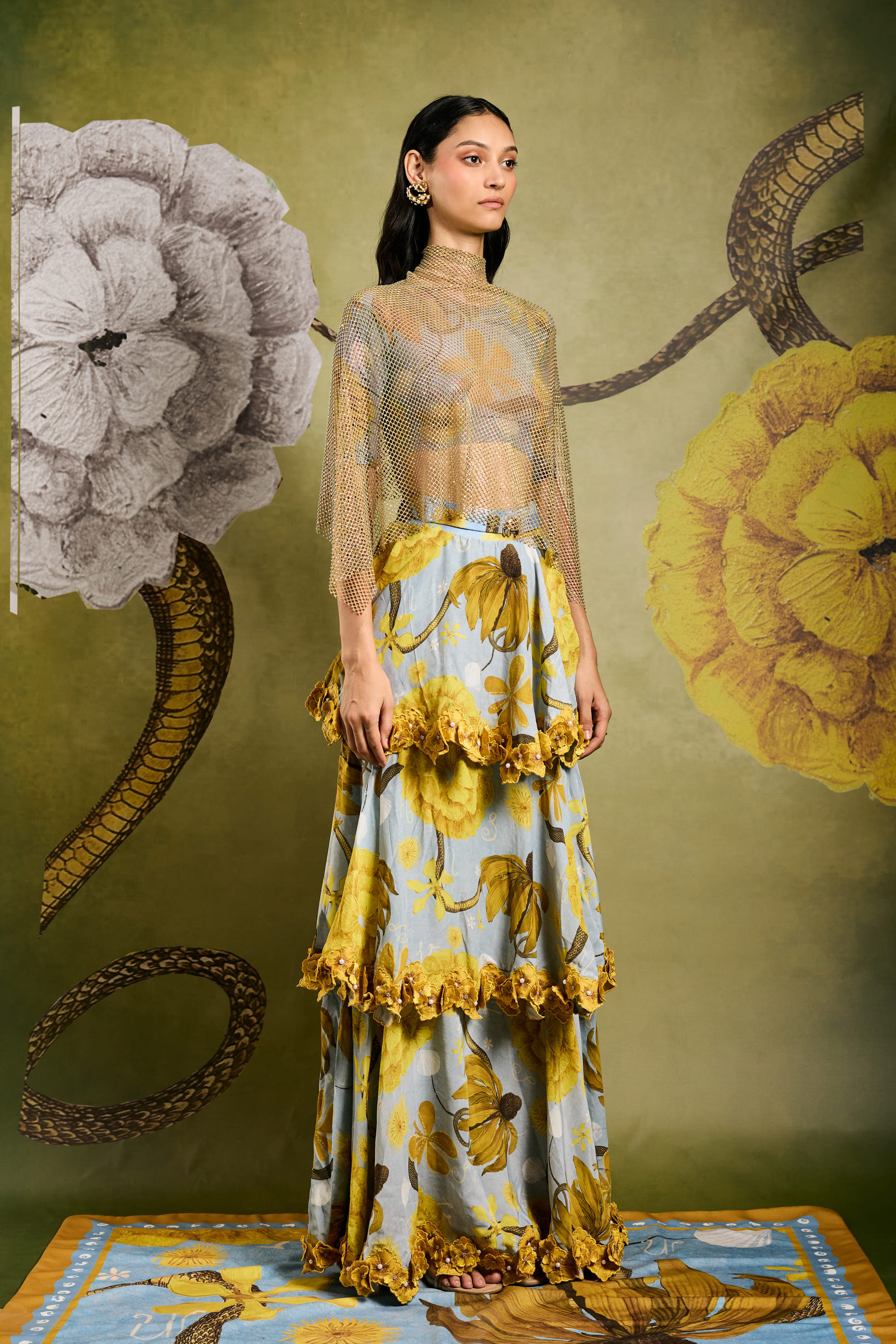 Cut from Power Mesh fabric in the decadent Primordi print and layered with the CrysMesh, this separate is the epitome of iconic opulence. Offering endless styling versatility, it can donned with a skirt for a perfect evening celebration.