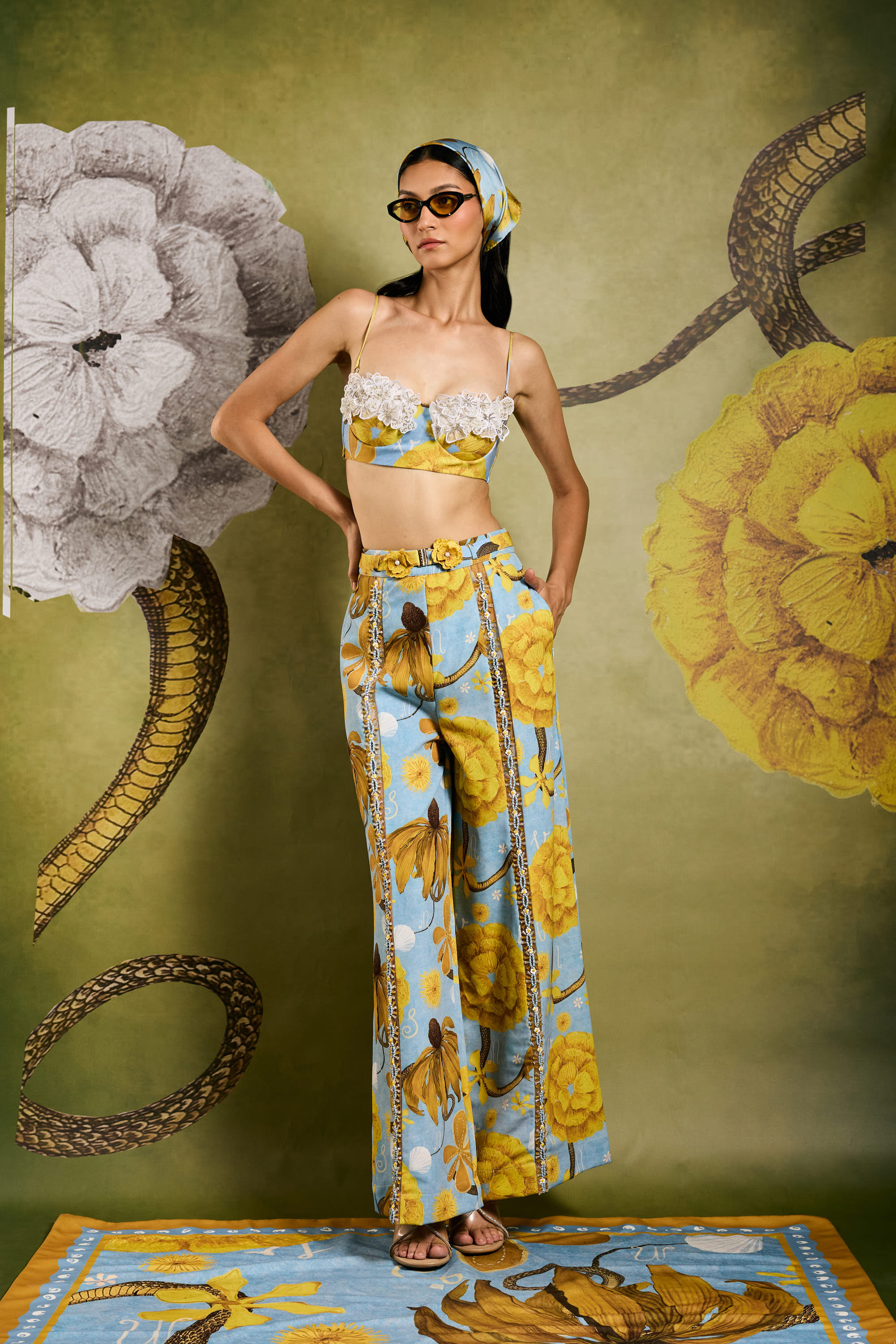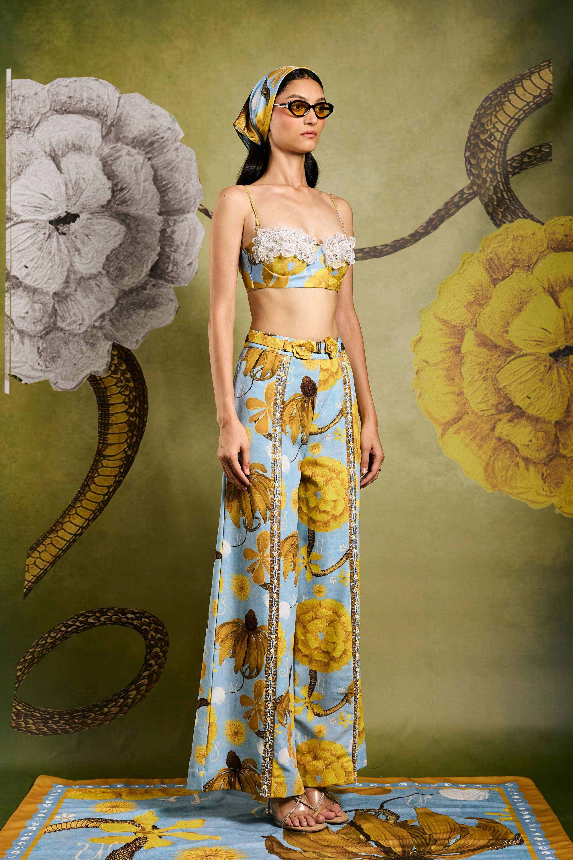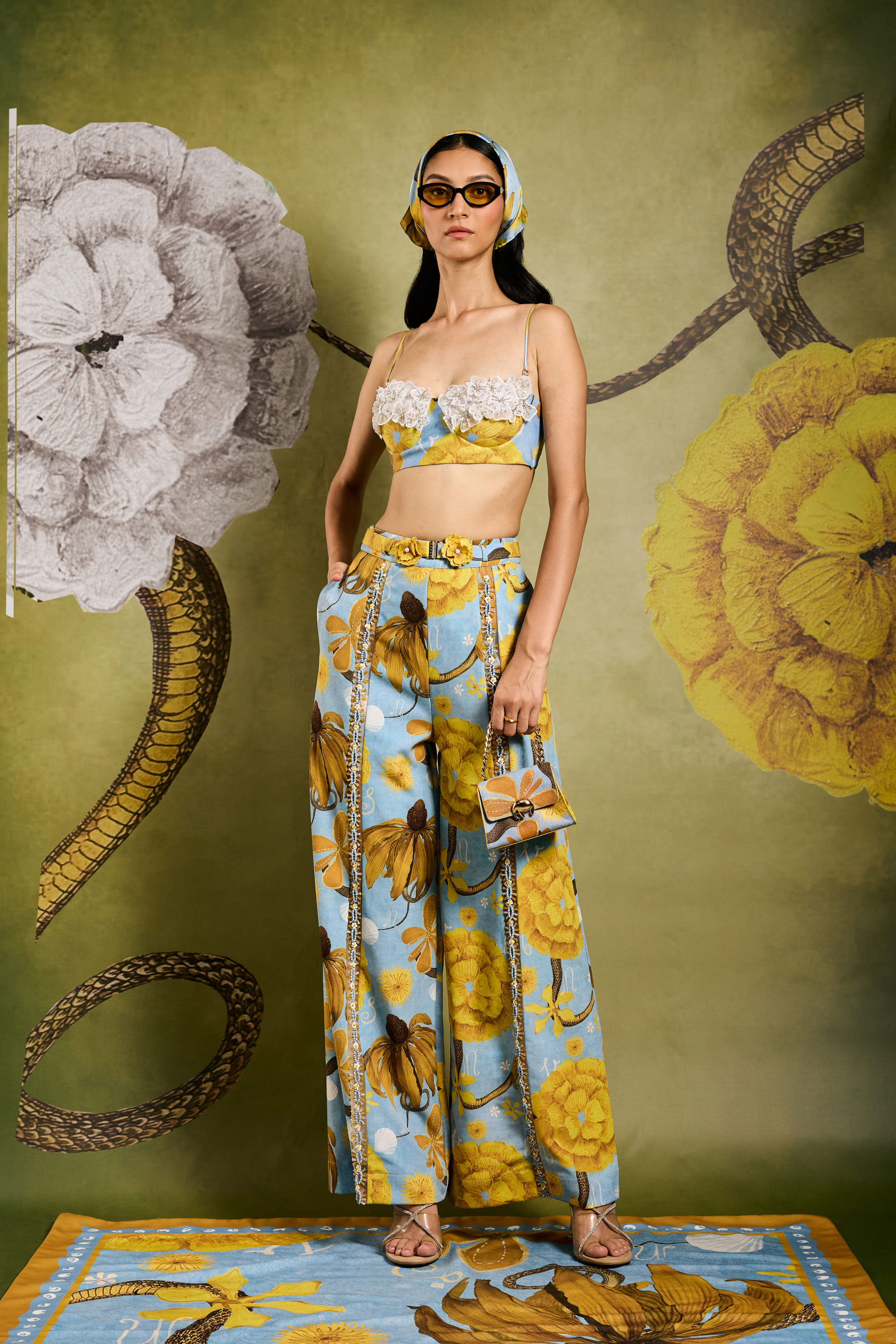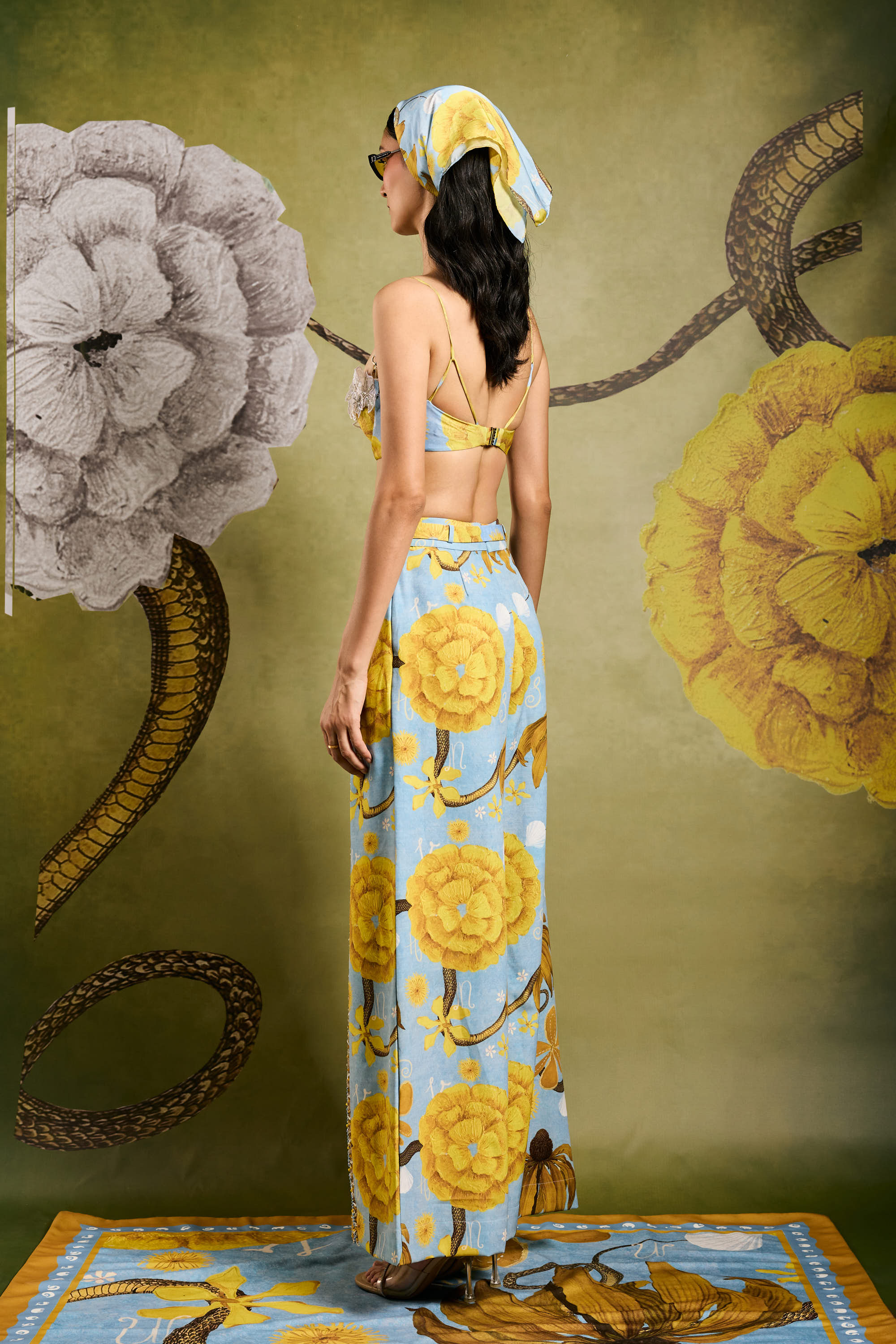 Primordi Floret Bustier is a chic and sharp style addition to bustiers. Featuring the whimsical Primordi print and accented with handcrafted floral skeinwork, it is designed to hug your frame and highlight your décolletage.