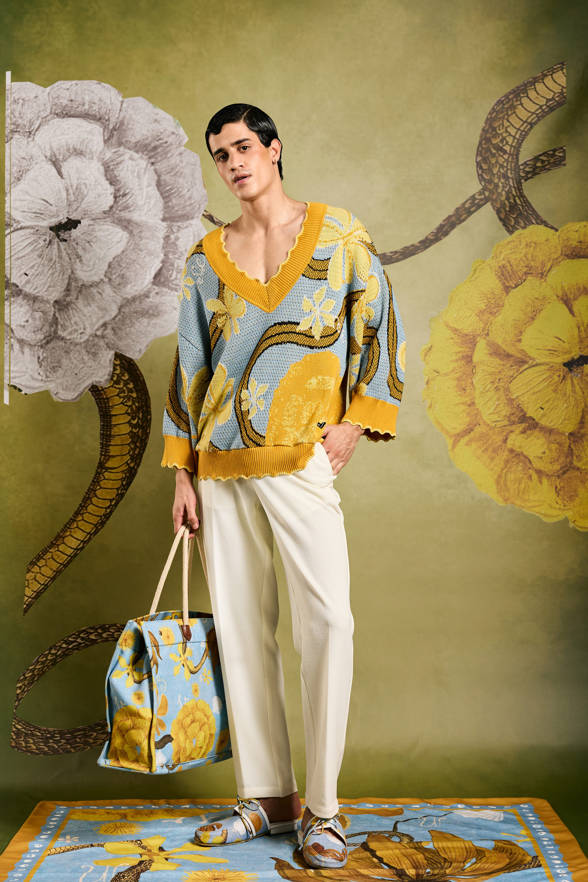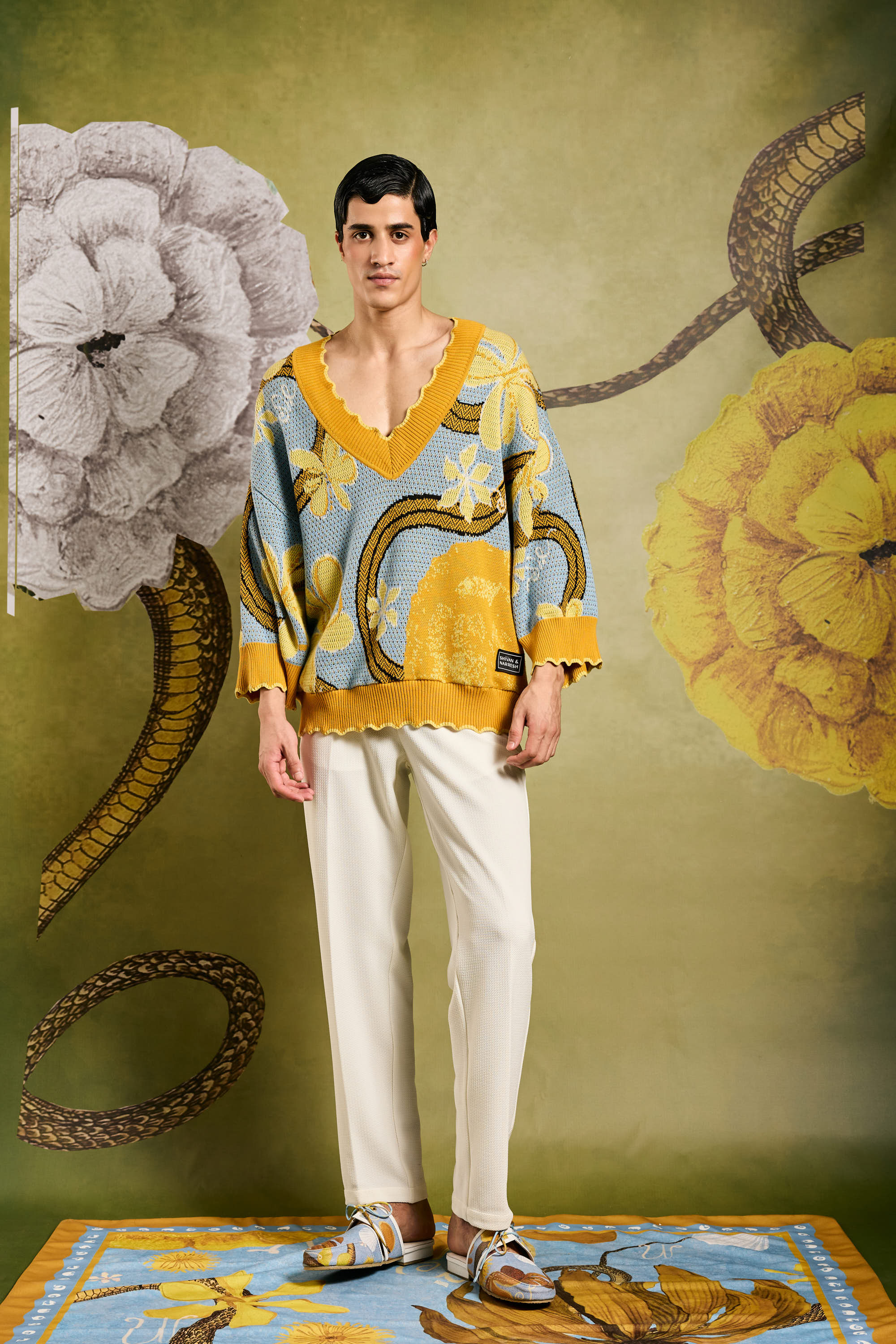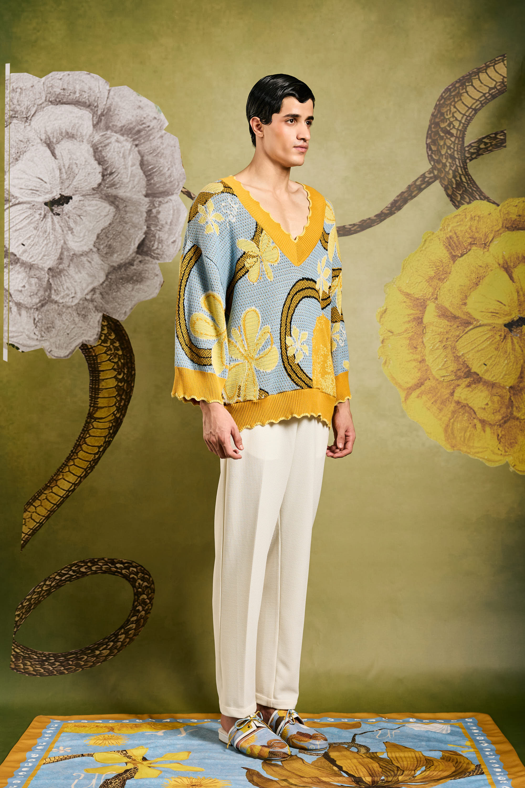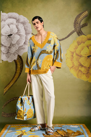 The Primordi Jacquard Jumper is the epitome of summer style. Masterfully crafted from cotton with luxurious knit construction, featuring bold botanical elements, this jumper transform any ensemble into a statement of refined taste. Echo the label's styling to let the jumper take centre stage.