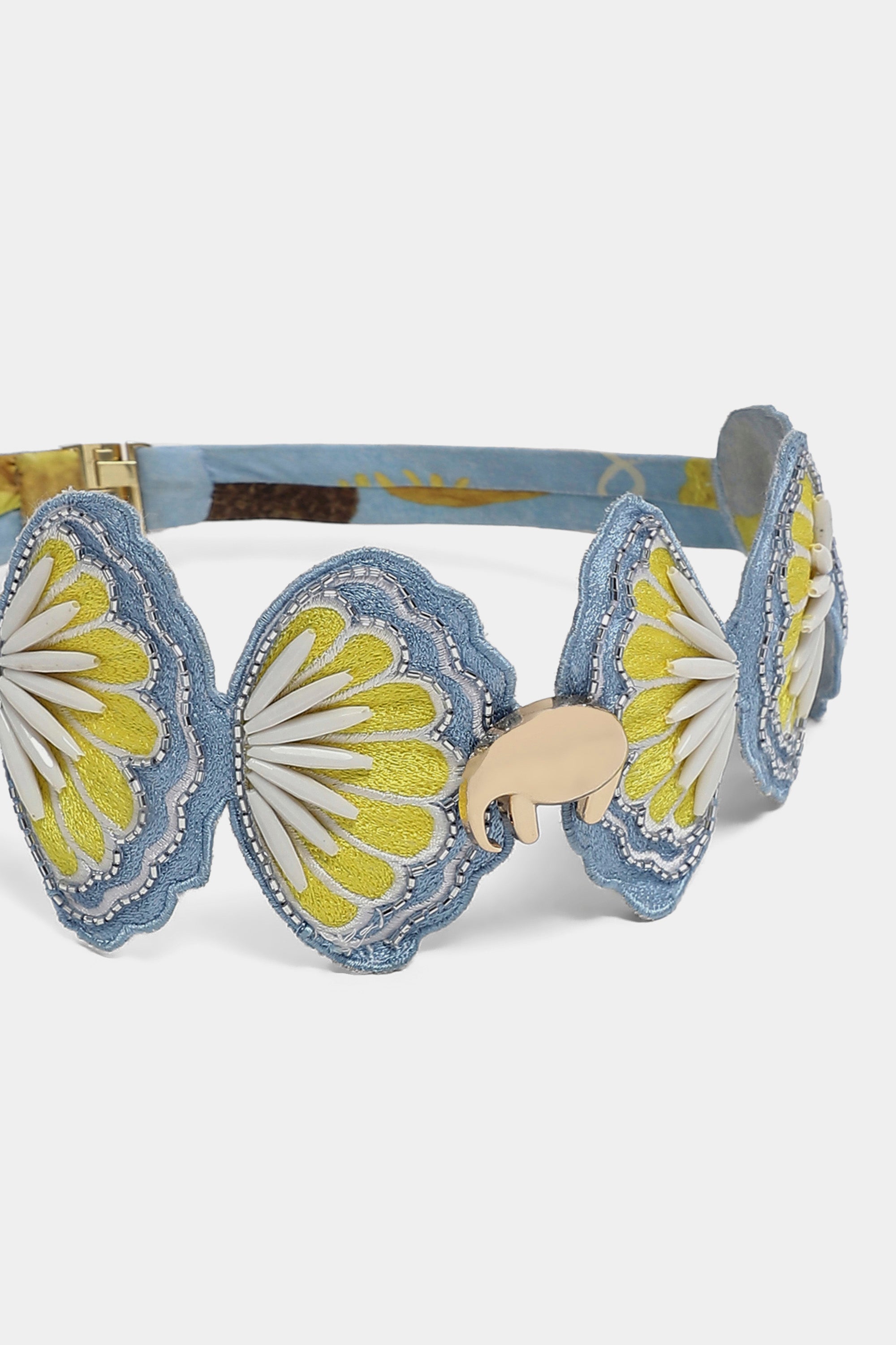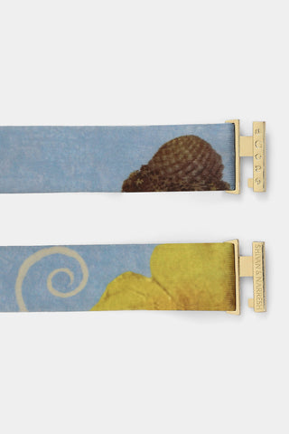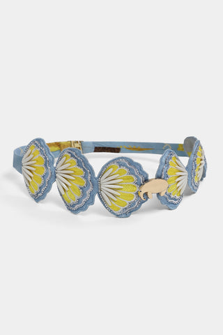 Inspired by the captivating sea shell, Primordi Shellace Belt is designed to complete your resort look. Carefully handcrafted with silk thread and glass beads, it is emboldened with the brand's chrome finish iconogram. The elasticated panels in signature print at back allows for adjustable customised fit over any attire.