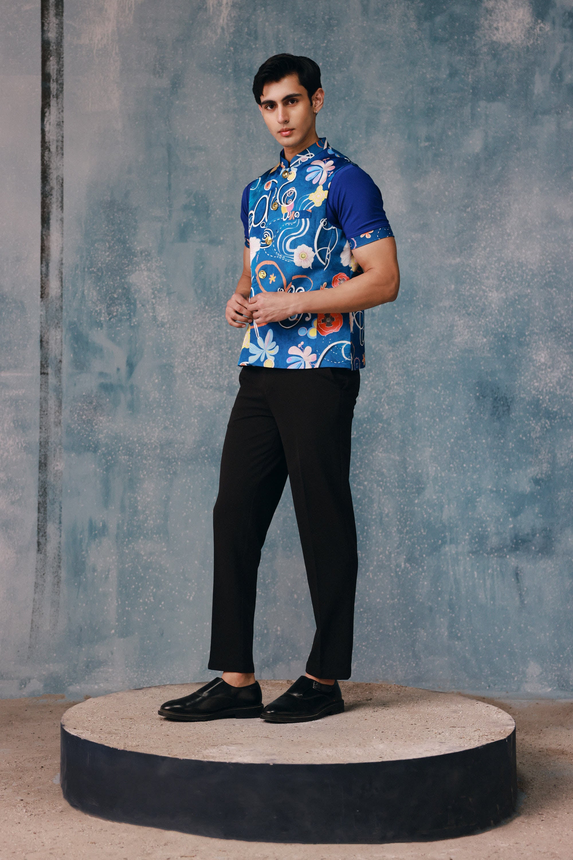 A modern ceremonial essential, the Springlie Classic Bandi introduces sharp tailoring with subtle metallic trims. Crafted in a satin blend for structure and sheen, it layers effortlessly over festive ensembles to complete occasion dressing.