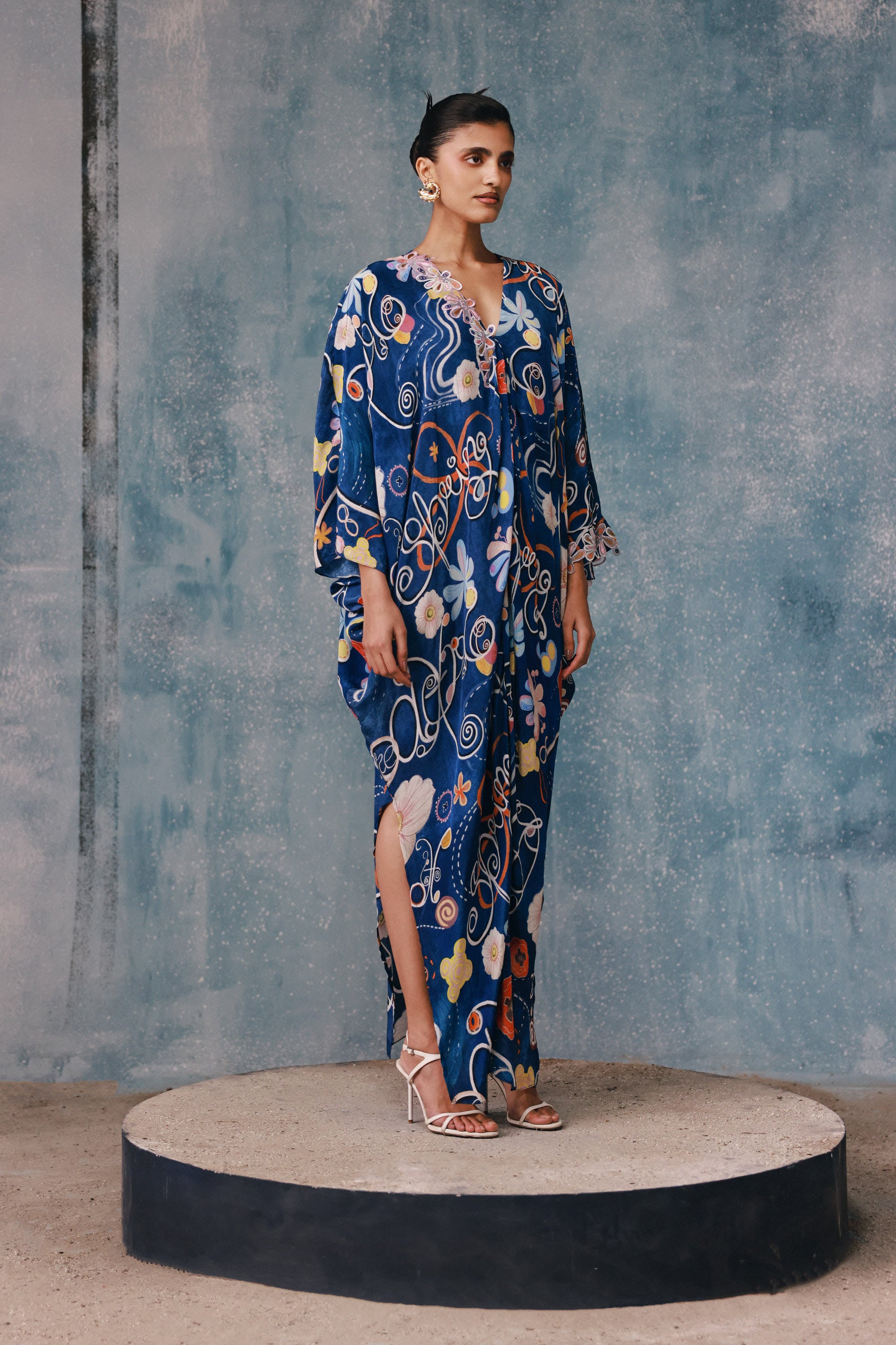 Defined by soft draping across twin shoulders, this kaftan moves effortlessly with the body. Designed for relaxed luxury, it layers seamlessly over swimwear. Ideal for elevated poolside dressing.