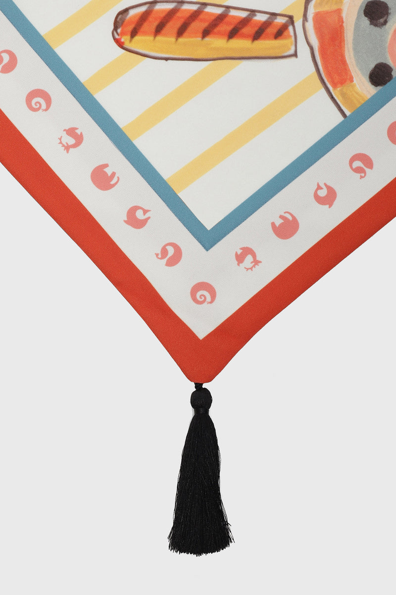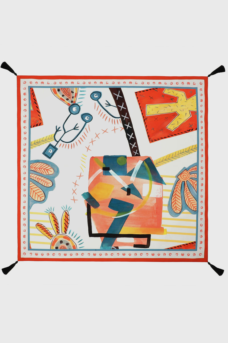 Surocco Rug draws inspiration from the iconic Cacti plant found across the Shekhawati region. The print is spread acros a pristine white surface and is crafted in light weight canvas with tassels making it an ornamental accessory for intimate living spaces.