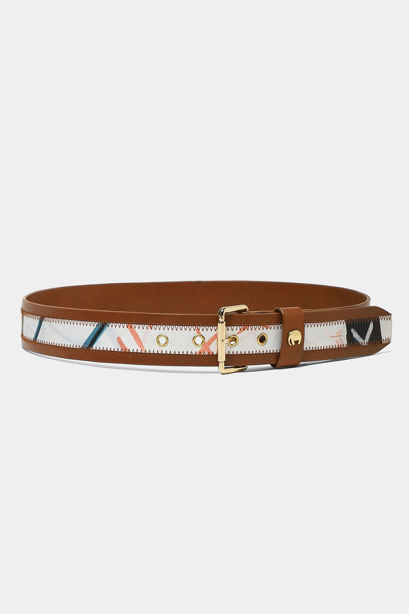 Tan Surocco Trimmed Belt reimagines the classic silhouette in genuine leather with the brand's signature print. Decorated with iconopin and gold finish buckle, it can elevate any attire.